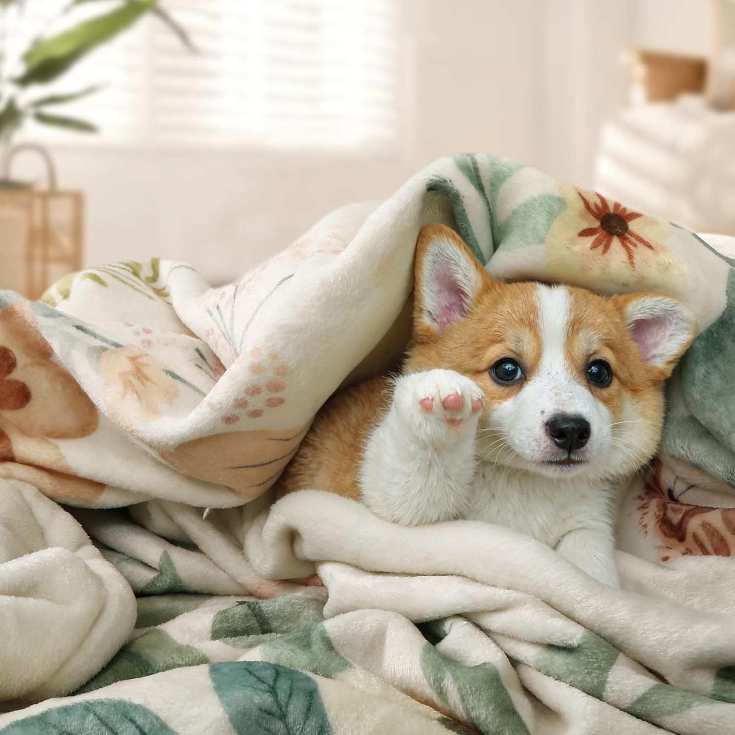 Lahome Floral Beige Soft Throw Blanket for Bed,Spring Botanical Aesthetic Blankets for Women Cute, Thick Warm Cozy Throws for Girls Sofa Chair Home Decor, Beige 50''x60''