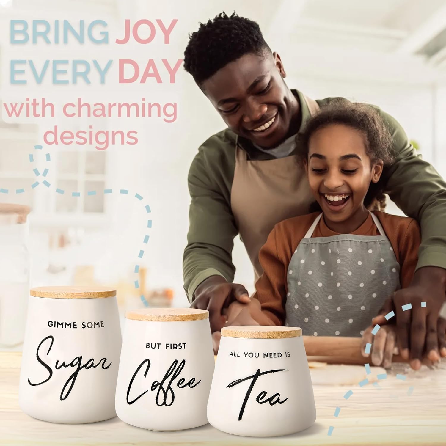 Coffee Tea and Sugar Ceramic Canister Set - 3-Piece Airtight Kitchen Canisters for Countertop - Coffee Bar Container Set