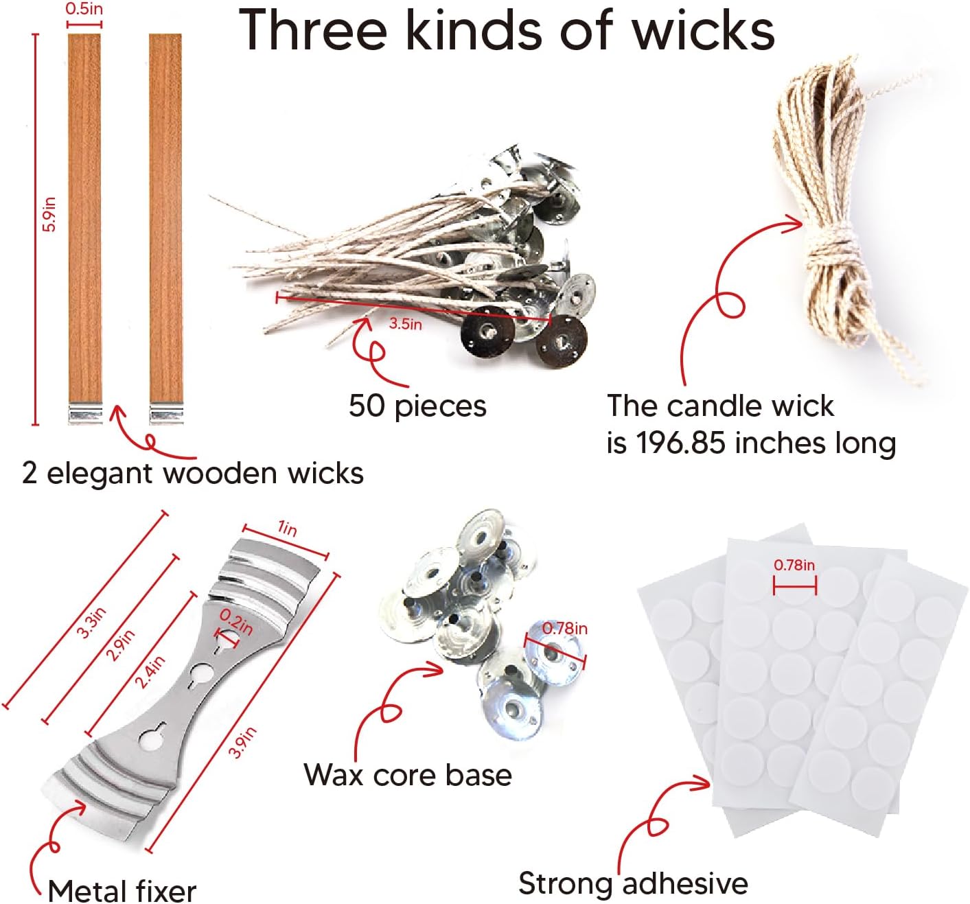 • 【Complete Candle Making Kit】This 5 lb soy wax kit includes everything you need: 197 inches of cotton wicks, 10 wick holders, 50 cotton wicks, 50 strong glue stickers, 2 wooden wick holders, and 1 wick centering tool. Enjoy a hassle-free, all-in-one candle-making experience.