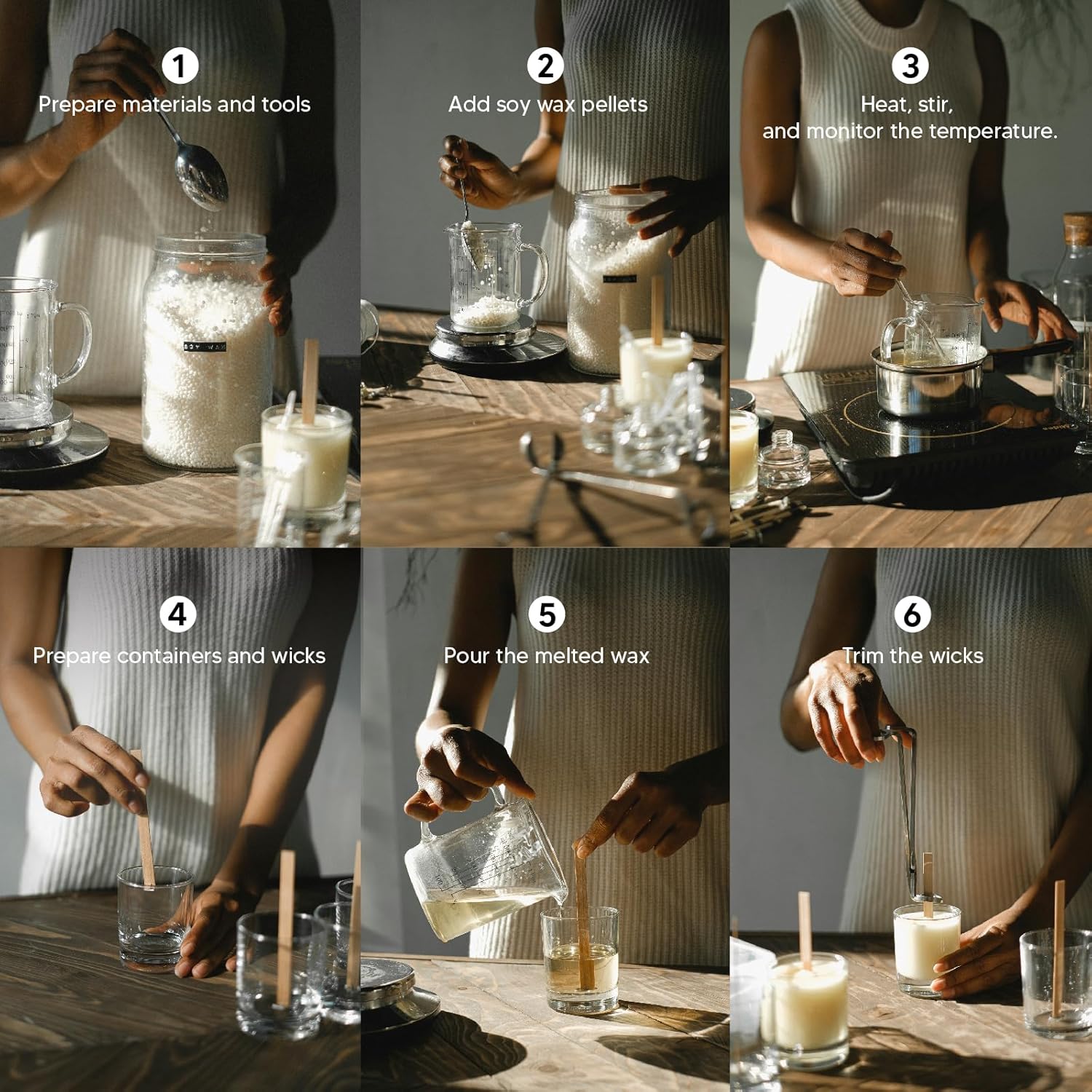 • 【Simple DIY Process】Simply melt the soy wax to 160-180°F using a microwave, double boiler, or wax melter. Add your favorite dyes and fragrances, pour into molds, and let it cool to craft flawless, custom candles. Unleash your creativity with ease!