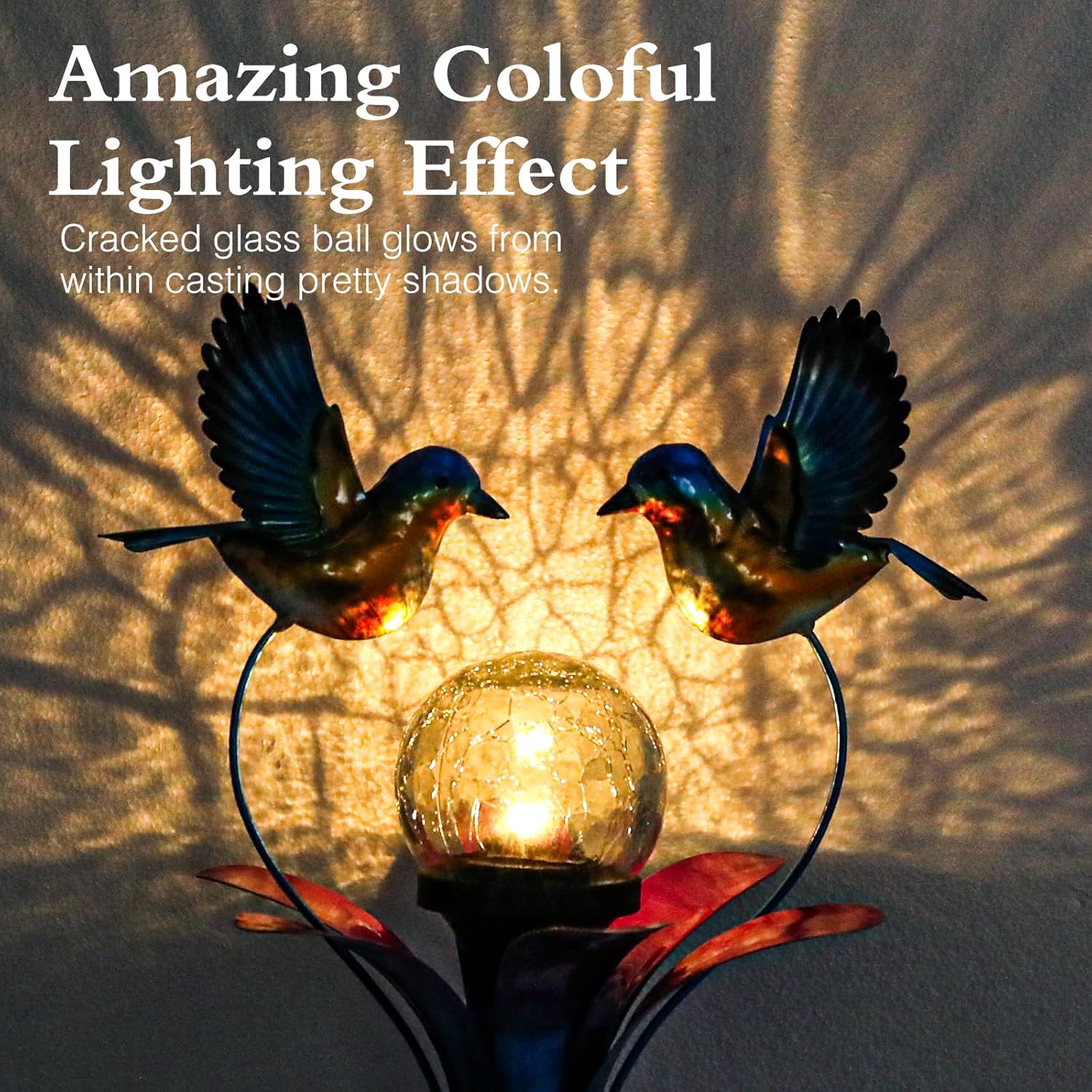 • Bluejay Shape Design - Made of durable and anti-rust painted metal, with a waterproof solar panel and cracked glass lamp. Its weather resistance makes it suitable for outdoors