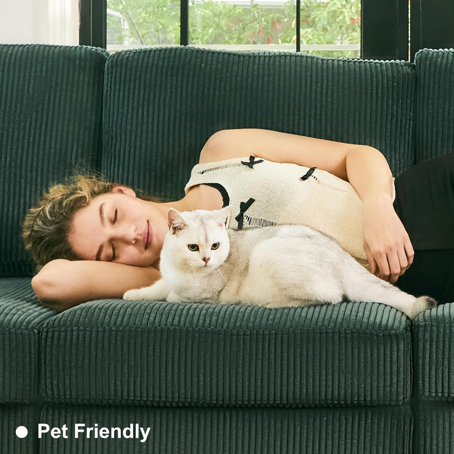 • Durable and Pet-Resistant Design: The sofa's corduroy material is both attractive and robust, making it an ideal choice for pet owners. It's resistant to pet damage and simple to maintain, with pet hair easily removed using a lint roller.