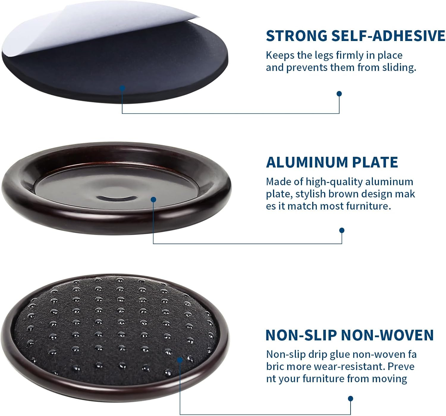 • 【Easy Installation】Step 1: tear off the white cover and press self-adhesive onto the surface of the aluminum plate. Step 2: slide them under your furniture legs and leave them for 10 minutes. Step 3: done.