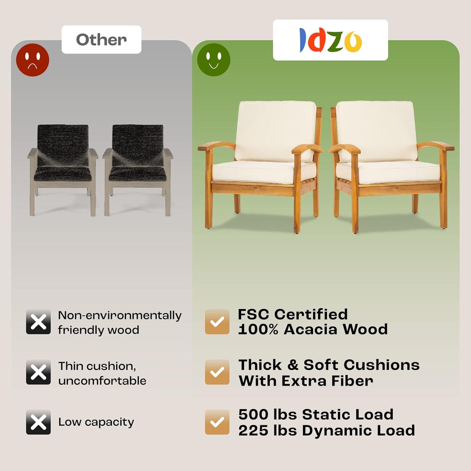 IDZO Laurent Accent Chairs, 500lbs Support, Acacia Wood, Set of 2, FSC Teak Finish, 3.9in Cushions, Ideal for Garden or Porch, Beige