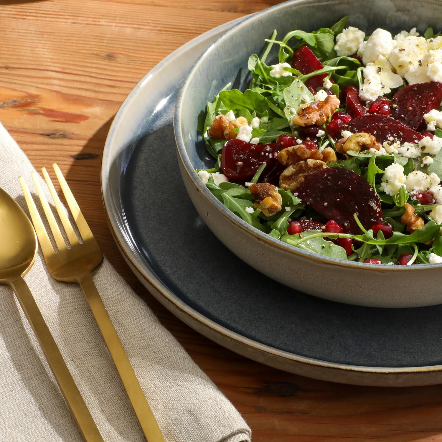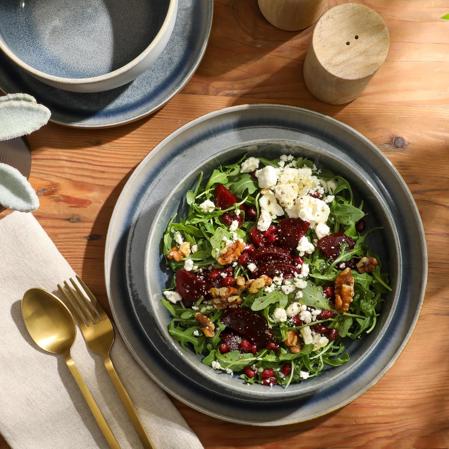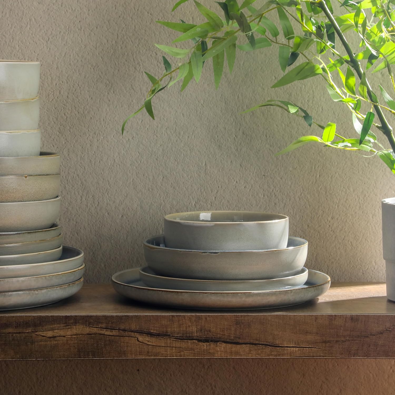 • WEAR-RESISTANT STONEWARE: Sturdy stoneware plates and bowls crafted to serve meals every day for any style, occasion, and budget. Fired at high temperatures to create a non-porous surface, this dinnerware set ensures strength and durability for long-lasting use.