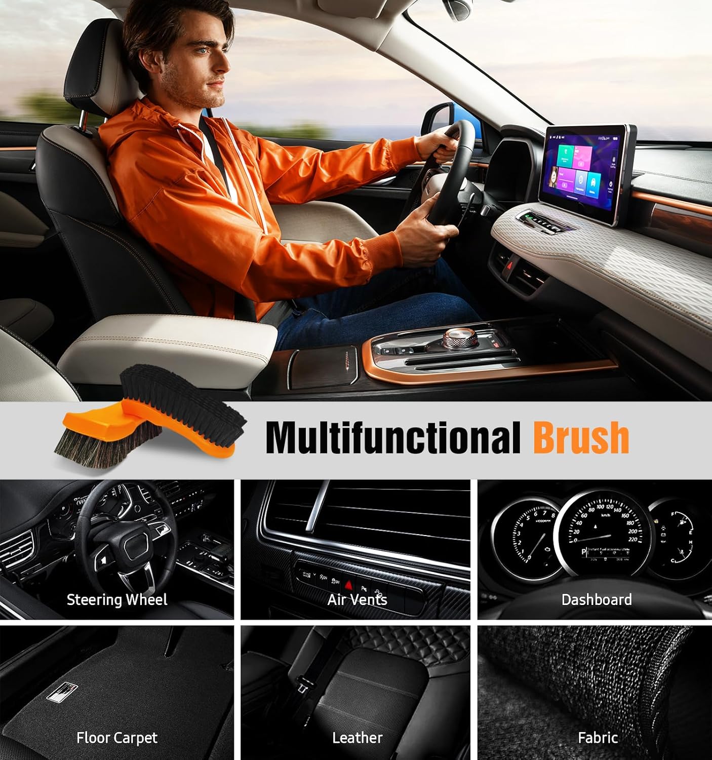 • Wear-Resistant and Durability: Car cleaning brush bristles that retain their shape after heavy cleaning and repeated use for long-lasting performance. The sturdy handle is designed to withstand frequent use, ensuring durability and reliability for all your cleaning needs
