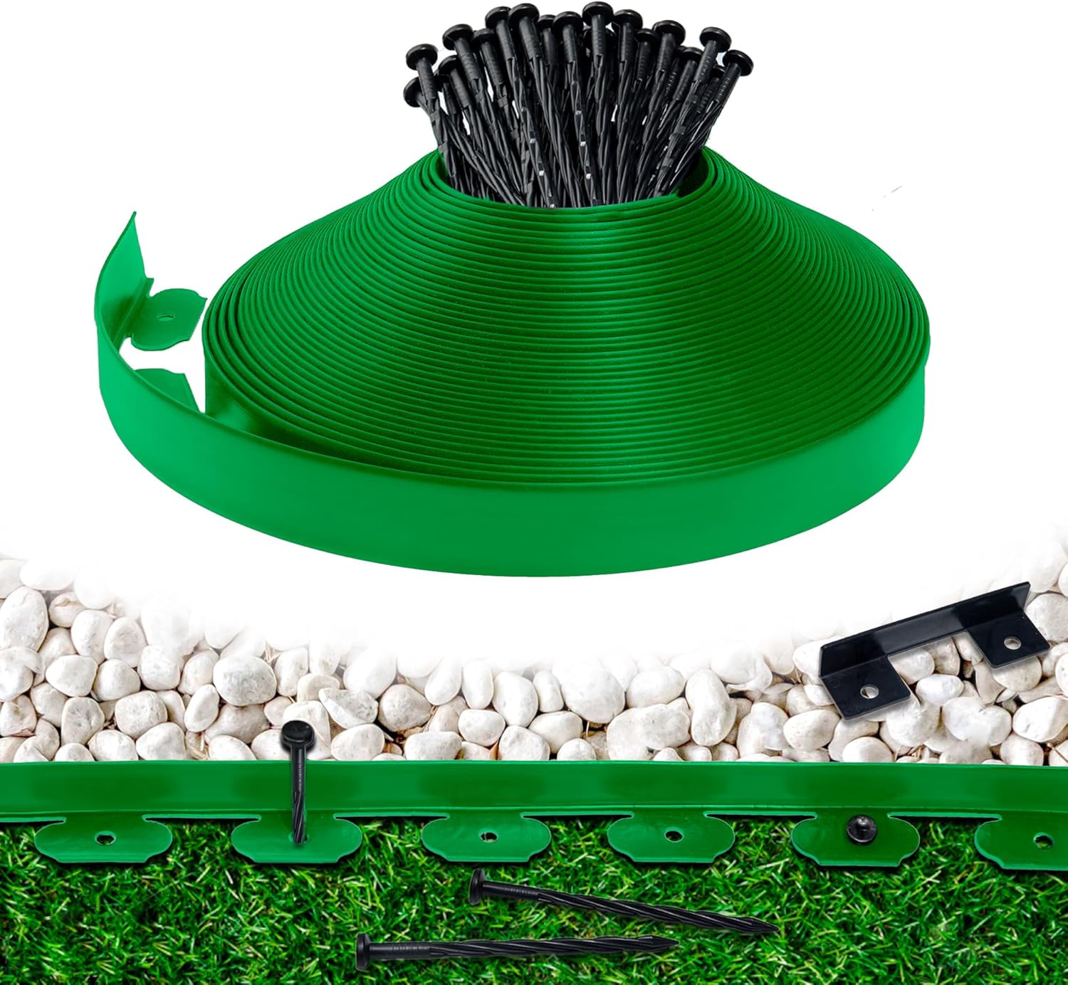 Landscape Edging Border 100 FT 2 Inch Tall with 180 Spikes, Plastic Edging for Landscaping, Garden Edging Border, Flower Bed, Paver and Lawn Edging Border, Green