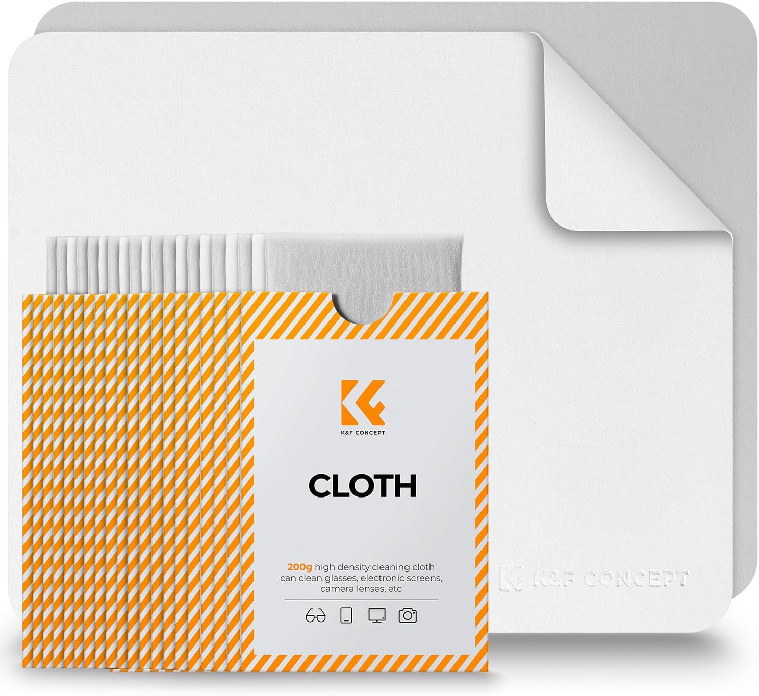 K&F Concept 20 Pack Lens Cleaning Cloth | Microfiber Cleaning Cloth | Camera Lens Cleaner | Camera Lens, Glasses, VR/AR Headset, and Screen Cleaning | White & Grey