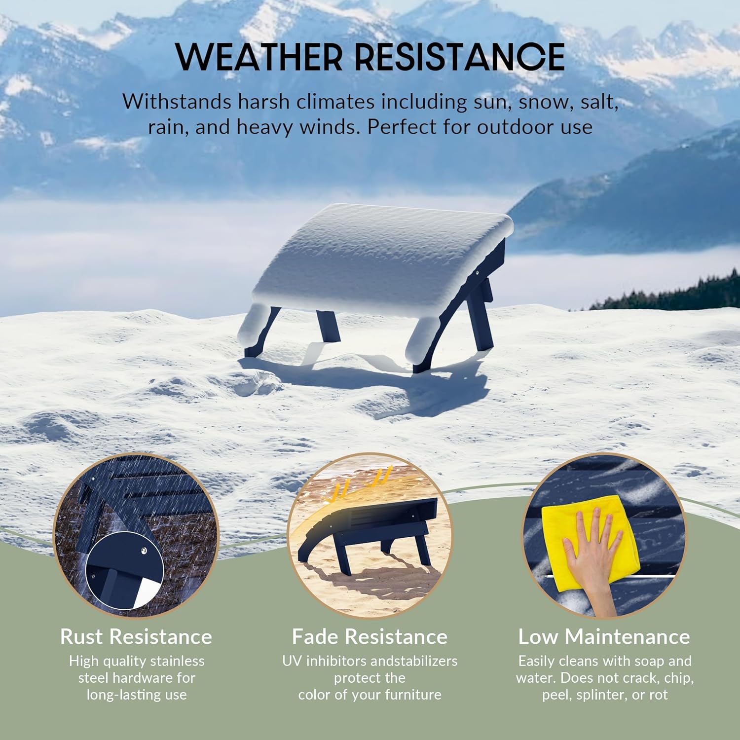• All Weather Resistant: This Adirondack foot rest are made of HDPE plastic, its weather resistant and UV fade resistant material can withstand in various enviromental pressure and not easy to dent, crack , peel or rot as wood.