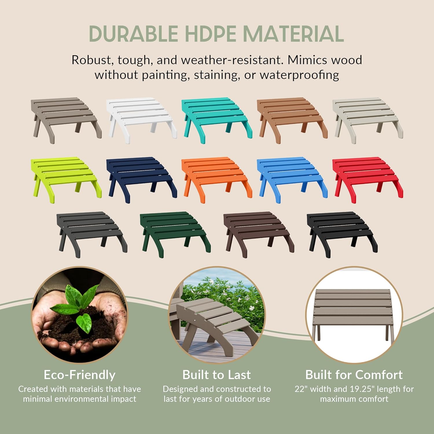 • All Weather Resistant: This Adirondack foot rest are made of HDPE plastic, its weather resistant and UV fade resistant material can withstand in various enviromental pressure and not easy to dent, crack , peel or rot as wood.