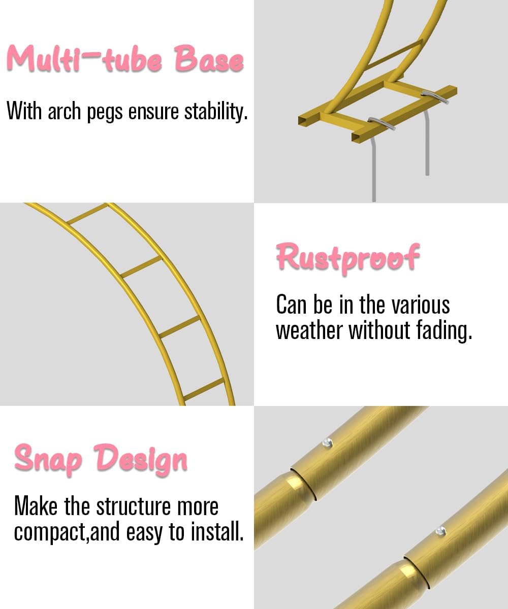 • Double-Tubes Construction: This garden arch features a robust double-tube structure with a sturdy base, ensuring exceptional stability and balance. The snap design contributes to a more compact and durable construction, making it suitable for both indoor and outdoor applications.