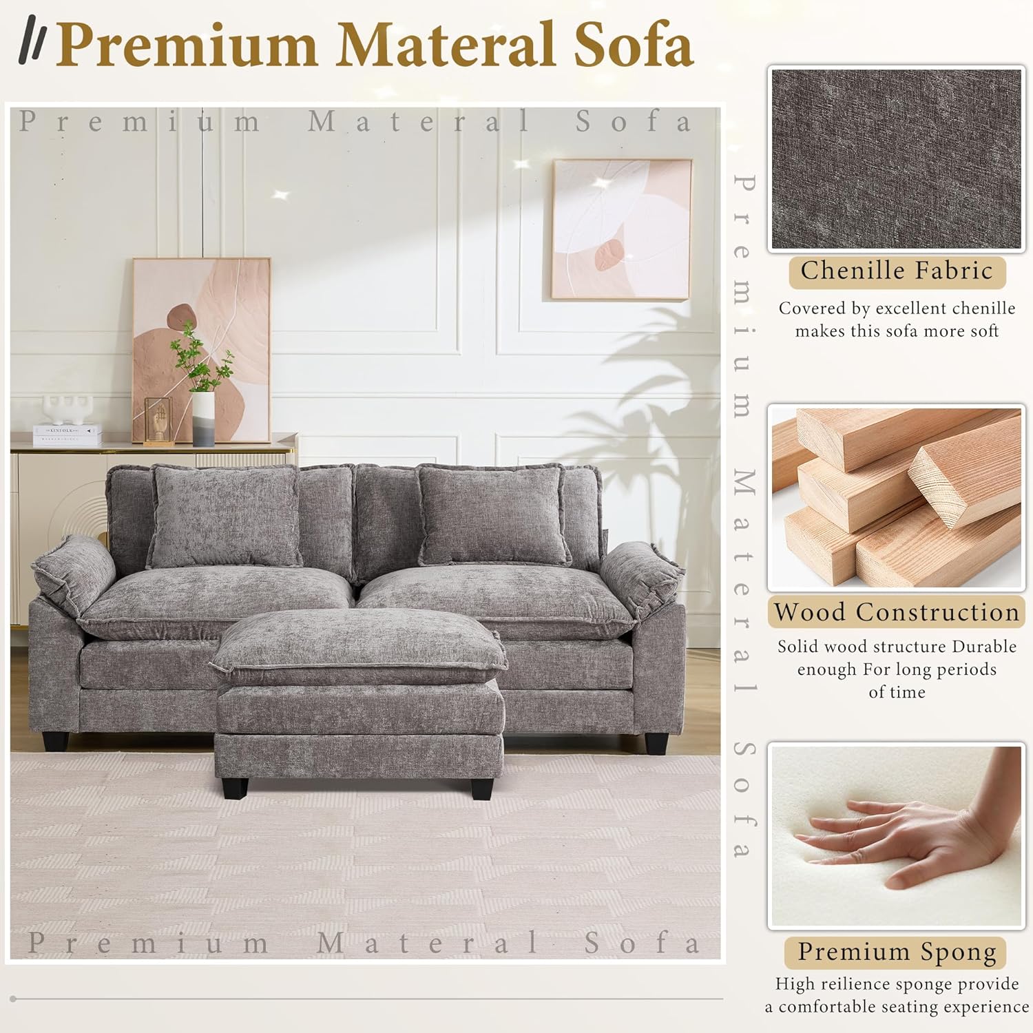 • Comfortable Seat Deep and seat width: This sofa has a hardwood frame as its basic structure and is filled with cotton for breathability and comfort. Our sofa cushions are deeper and wider and the cushions are removable!