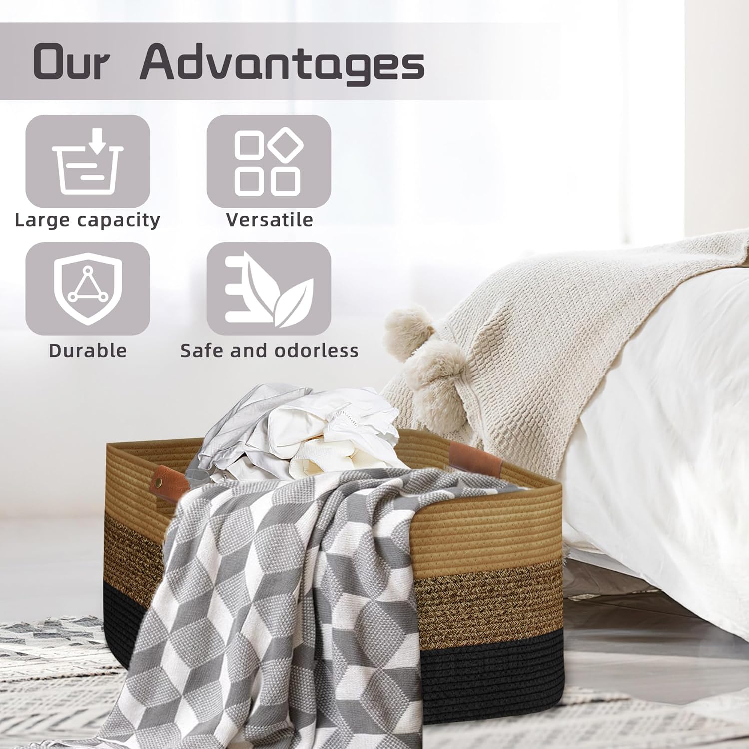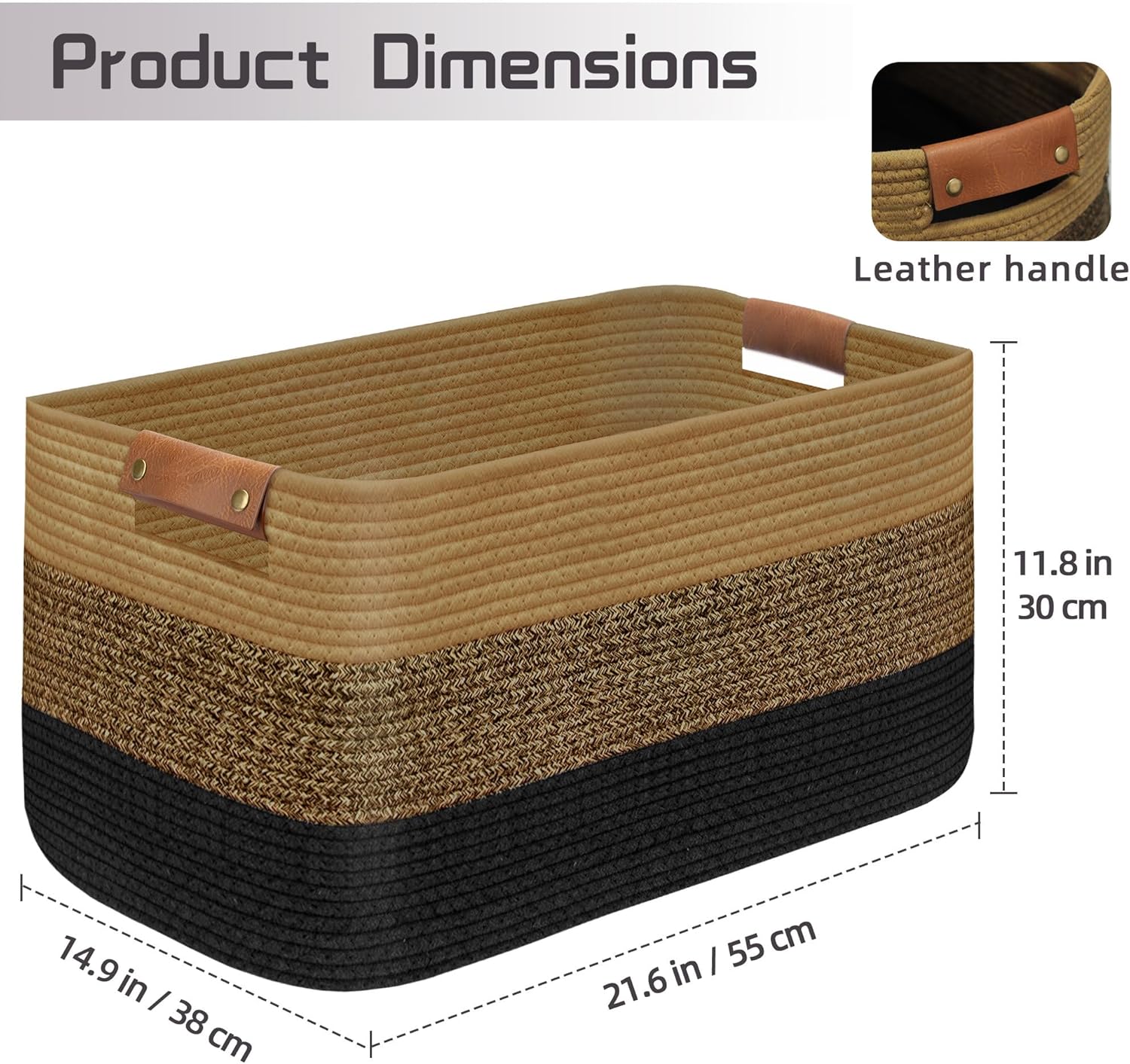• Decorative & Versatile: Pure Natural Material Elevates Any Space - Laundry, Toys, or Blanket Storage Solution.The elegant leather handles not only take care of your hands but also add a distinctive highlight to our large baskets.