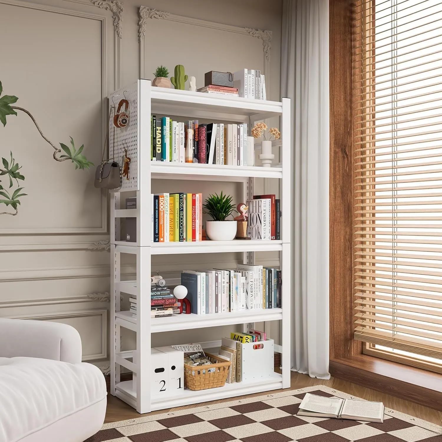 • 【Thoughtful Designs】Designed with your convenience in mind, this white metal book shelf for bedroom includes built-in bookend strips to keep your books and items neatly in place. Additionally, the anti-tip feature ensures safety by preventing the 5 shelf bookcases from tipping over, making it ideal for home