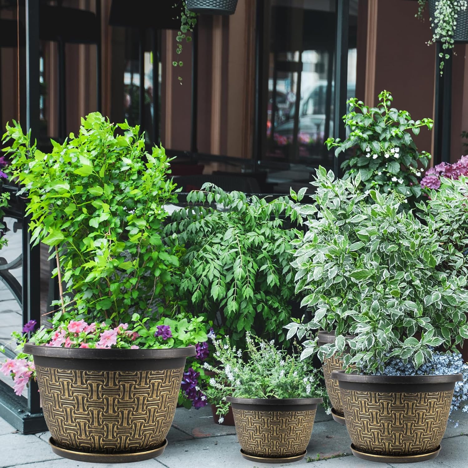 • 【WEATHER RESISTANT】Our Planters pots for plants are made of sturdy recyclable plastic. Allow you to enjoy these flower pots outdoor in all types of weather. Built to withstand intense sun and harsh winter temperatures, free from fade, frost, crack and peel damage so you can use it indoors and outdoors freely.