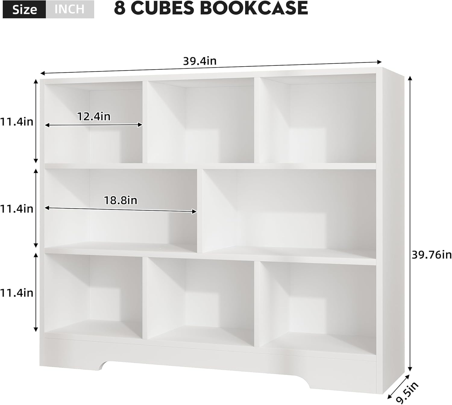 • 【Durable Bookshelf】Overall dimensions: 39.4”L x 9.4”W x 39.8”H. This Cube Storage Organizer is crafted from MDF board, which is durable and sturdy. The thick bottom base is designed to strengthen the stability.