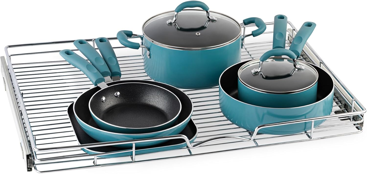 • A MUST HAVE PULL OUT DRAWER: This sliding cabinet organizer installs in under 30 minutes and makes it super easy to store, organize, and access spice rack, pots, and baking sheets.