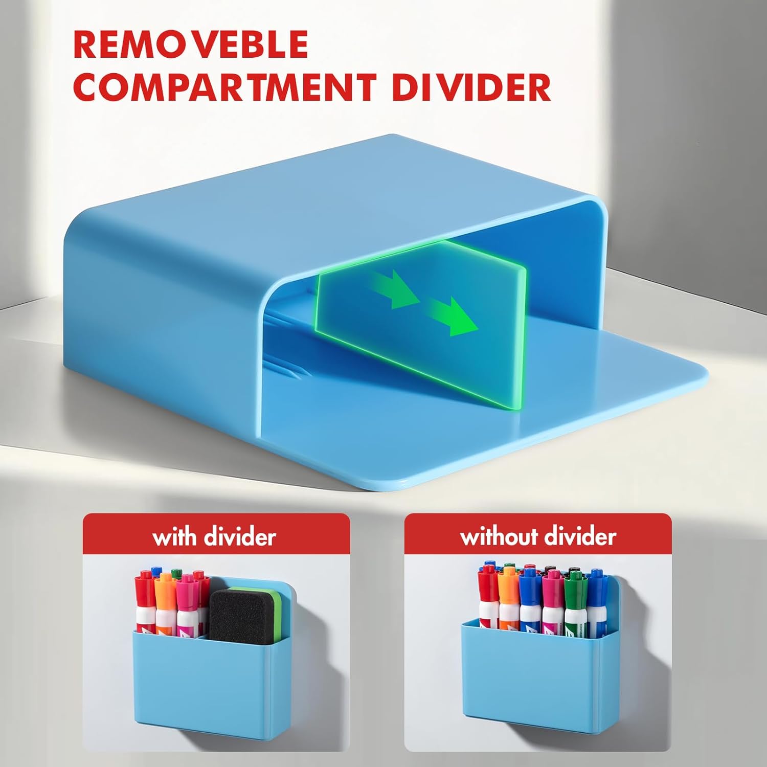 BEYGORM 2 Pack Plastics Magnetic Pen Holder for Refrigerator, Dry Erase Marker Holder for Whiteboard,Magnet School Locker Organizer Accessories, Pencil Cup, Pen Caddy, Classroom Organization(Blue)