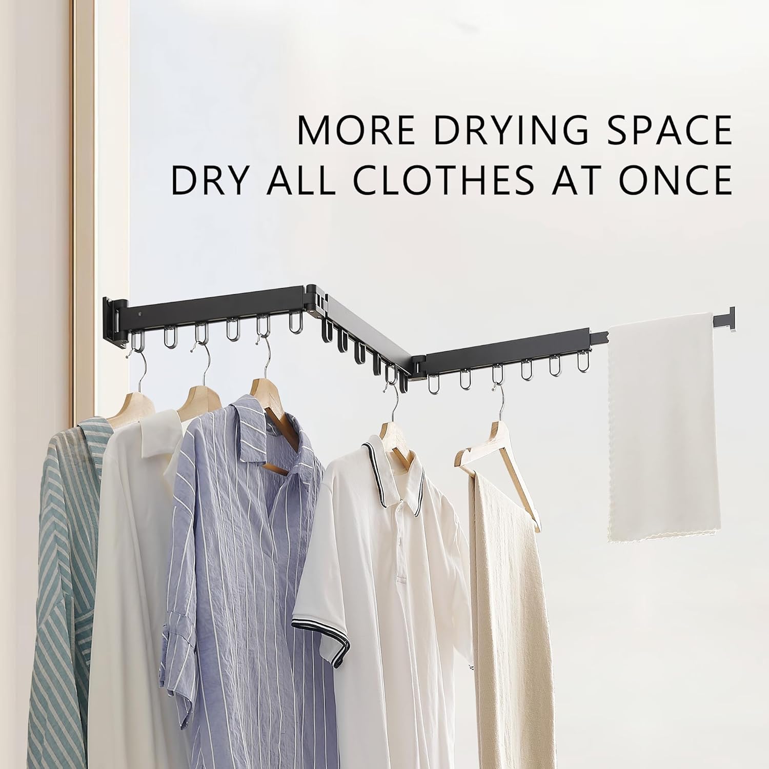 • More Application: This clothes drying rack foldable can be used indoors and outdoors, in halls, laundry,balcony etc. You can install wall mounted drying rack wherever you want