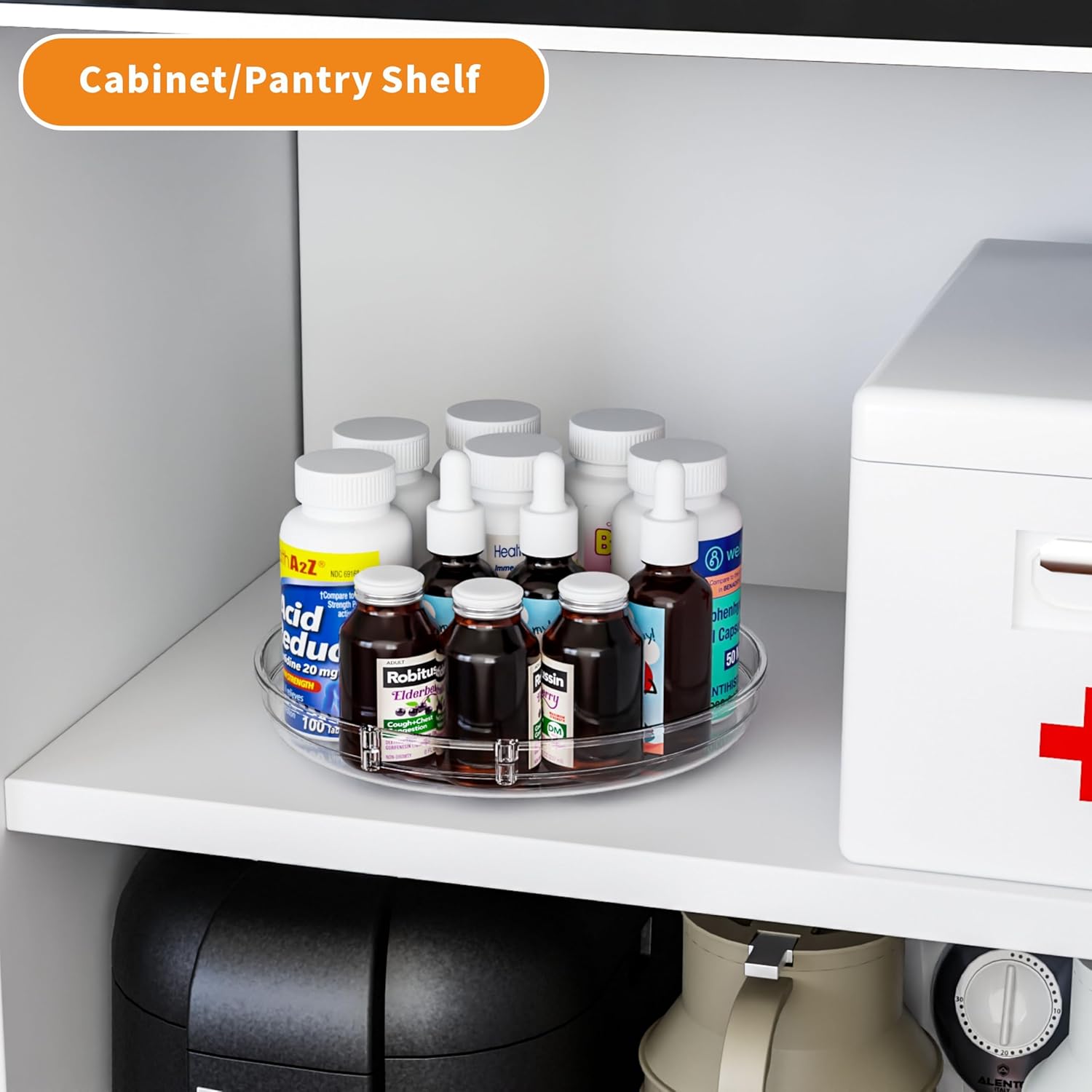 9.5" W Acrylic Clear Lazy Susan Turntable for Cabinet,Kitchen Countertop,Refrigerator and Pantry Organization Storage,1 Tier Small Spinning Organizer for Vitamin,Medicine,Spice Rack & Organization