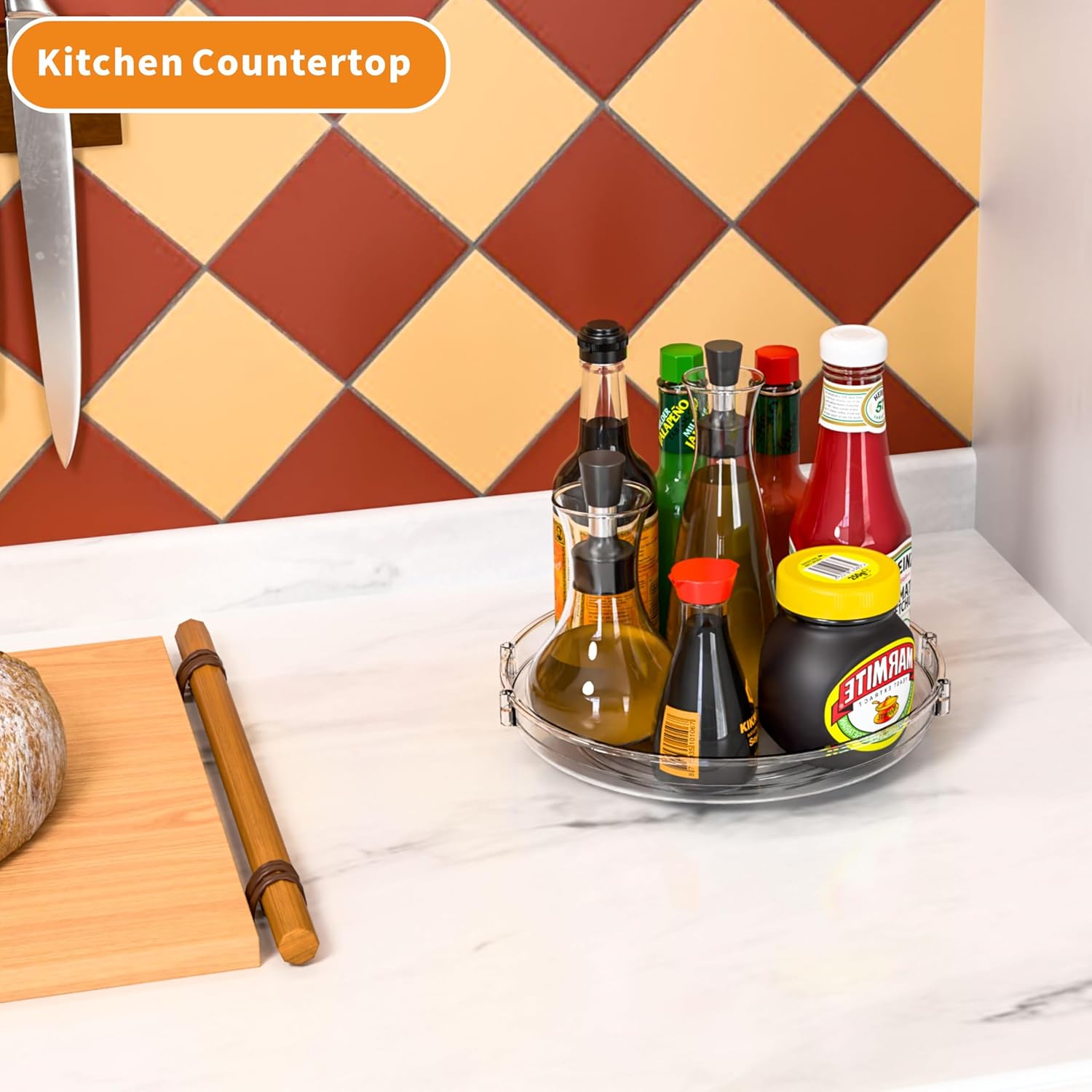 • 【Sturdy & Durable】 This plastic lazy susan organizer is made to last and complement any kitchen decor. Not only good for fridge organizers and storage, it is also great for lazy susan turntable for cabinet,turntable organizer for kitchen,cabinet lazy susan,rotating kitchen storage rack,spice spinner for cabinet,rotating tray for refrigerator organizing,refrigerator shelf organizer