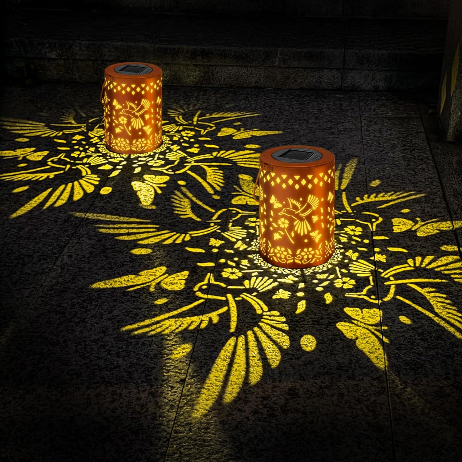 Solar Lanterns Outdoor Waterproof Hummingbird Garden Decor Birthday Gifts for Women Mom Grandma Hanging Solar Lights Metal Decoration for Yard, Patio, Backyard, Porch, Garden, 2 Pack