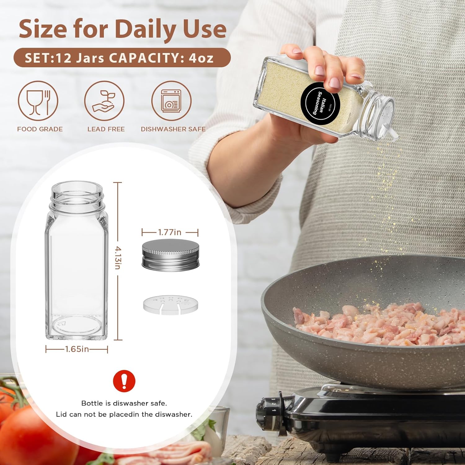 • 【Complete Spice Rack with Spice Jars Set】: This set of spice jars contains: 2 pack magnetic spice rack, 12 x 4oz glass spice jars with 5 sheets pre-printed labels and 1sheet blank label, 1 white pen , 1 silicone folding funnel (for refilling). All necessary accessories, in one box, no need to purchase separately. This set of seasoning containers with labels is the best choice for your kitchen.