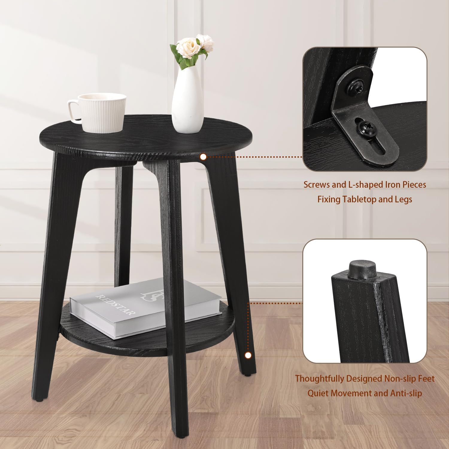 • High Quality & Unique Design: 2 round board as well as 4 legs made of solid wood form the stable foundation of this modern small round side table—this nightstand table boasts a stable, sturdy structure and can hold up to 200 lb in total