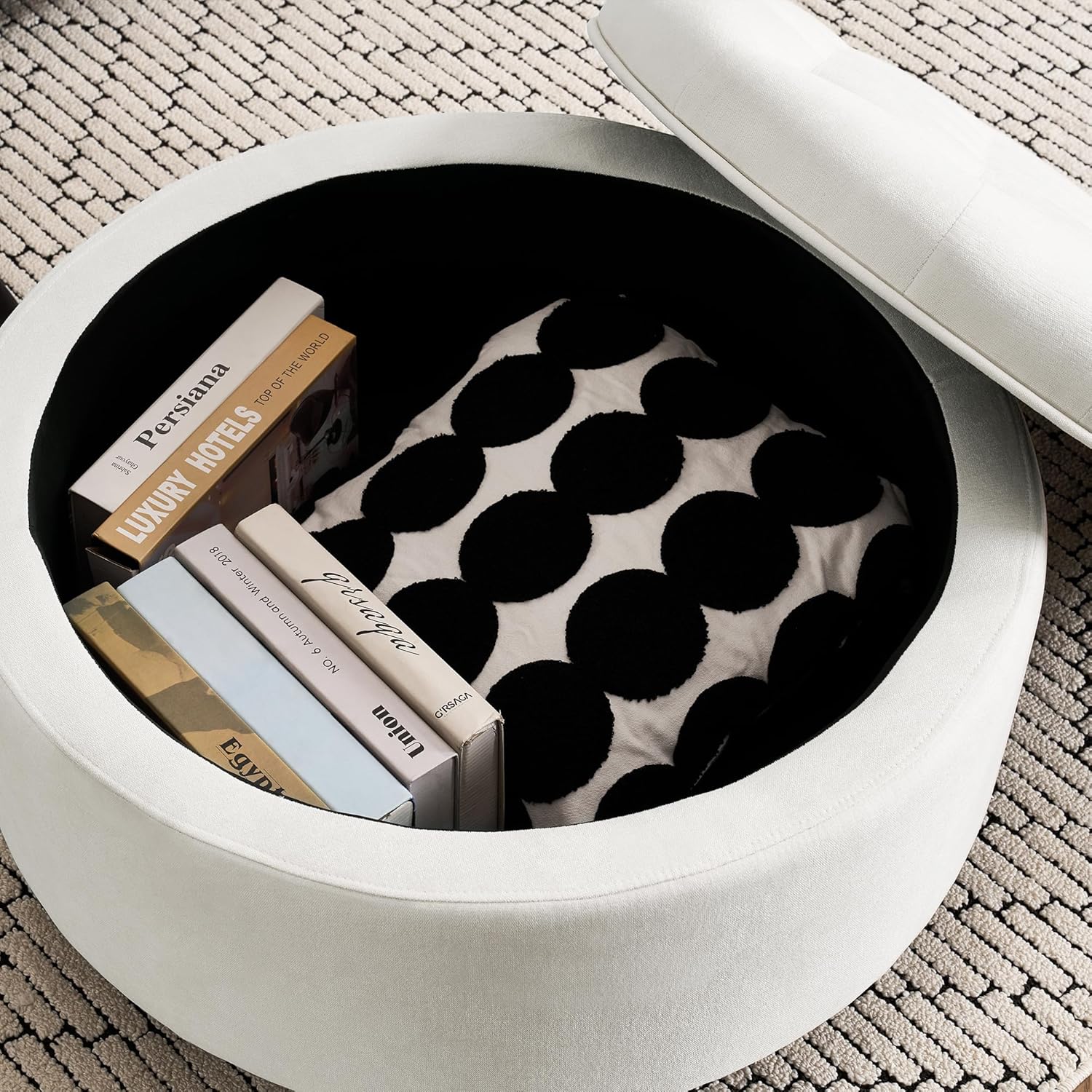30-Inch Large Round Ottoman, Tufted Coffee Table with Removable Lid Top, Upholstered Footrest Modern Button Circle Storage Ottoman for Living Room, Office, Ivory