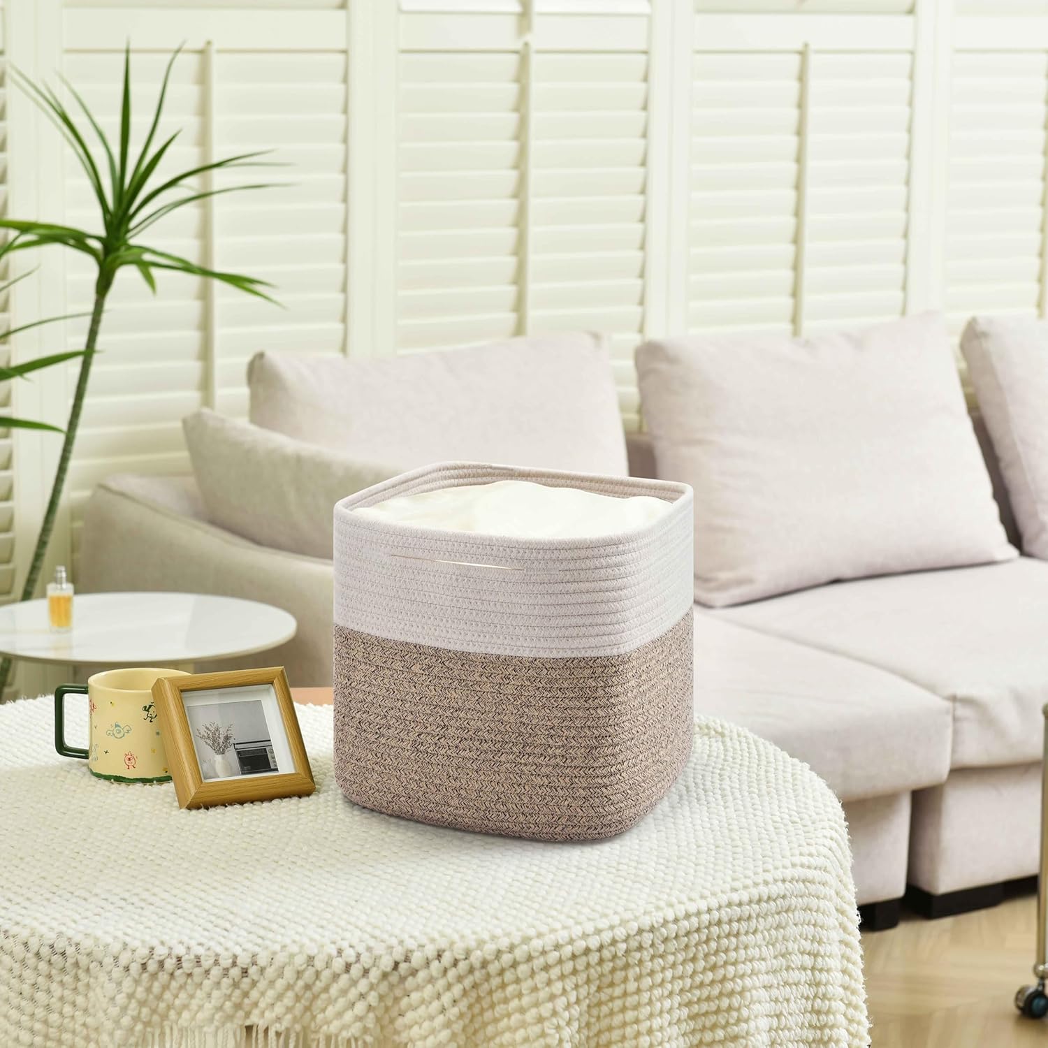 3 Pack Storage Cubes 11 Inch Cotton Rope Woven Baskets for Organizing Cube Bin Square Shelves Organizer,Classroom,Kids Toy Bins,Closet,Baby Nursery(Brown)