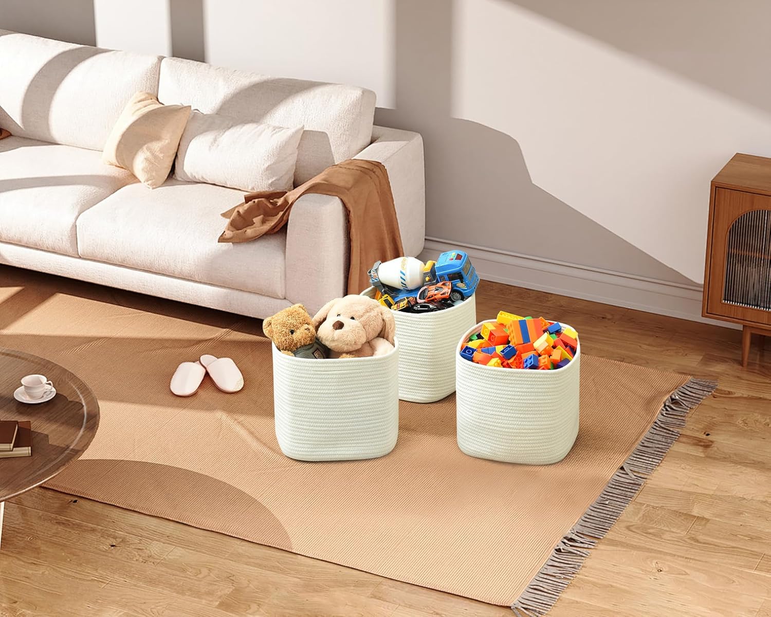 3 Pack Storage Cubes 11 Inch Cotton Rope Woven Baskets for Organizing Cube Bin Square Shelves Organizer,Classroom,Kids Toy Bins,Closet,Baby Nursery(Creamy White)