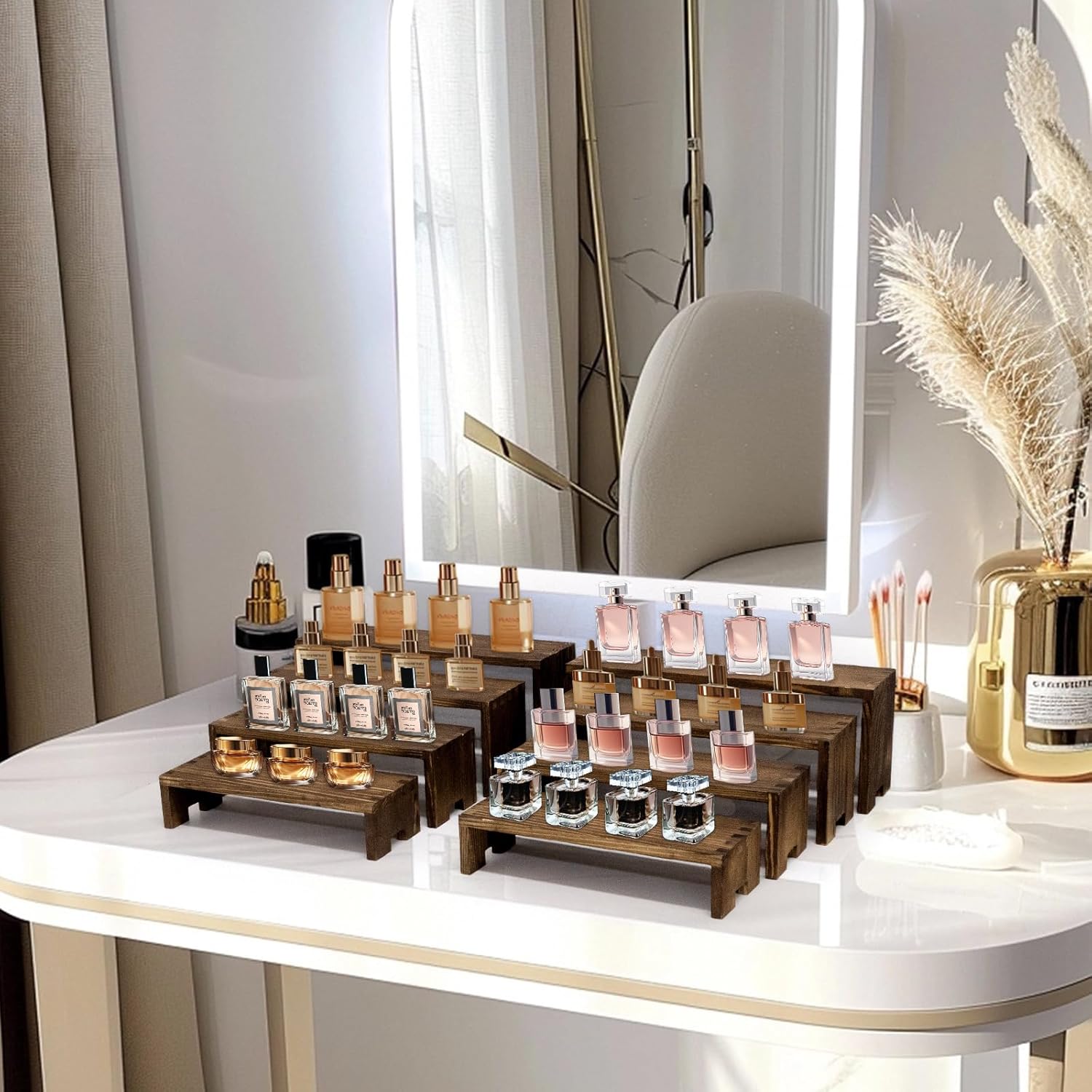 • 【Large Wooden Tierd Risers for Display】🎁: This 2 set 4 tier display shelf for cupcakes or vendors has stackable nesting design, so the wooden display risers easily access as desktop storage racks,also they has strong load-bearing capacity for more kinds perfumes, collectible figures,kitchen condiment bottles, bathroom toiletries because of varieties size of (L8.6''/22cm-9.4''/24cm-10.2''/26cm-11''/28cm)XW3.14'' /8cm