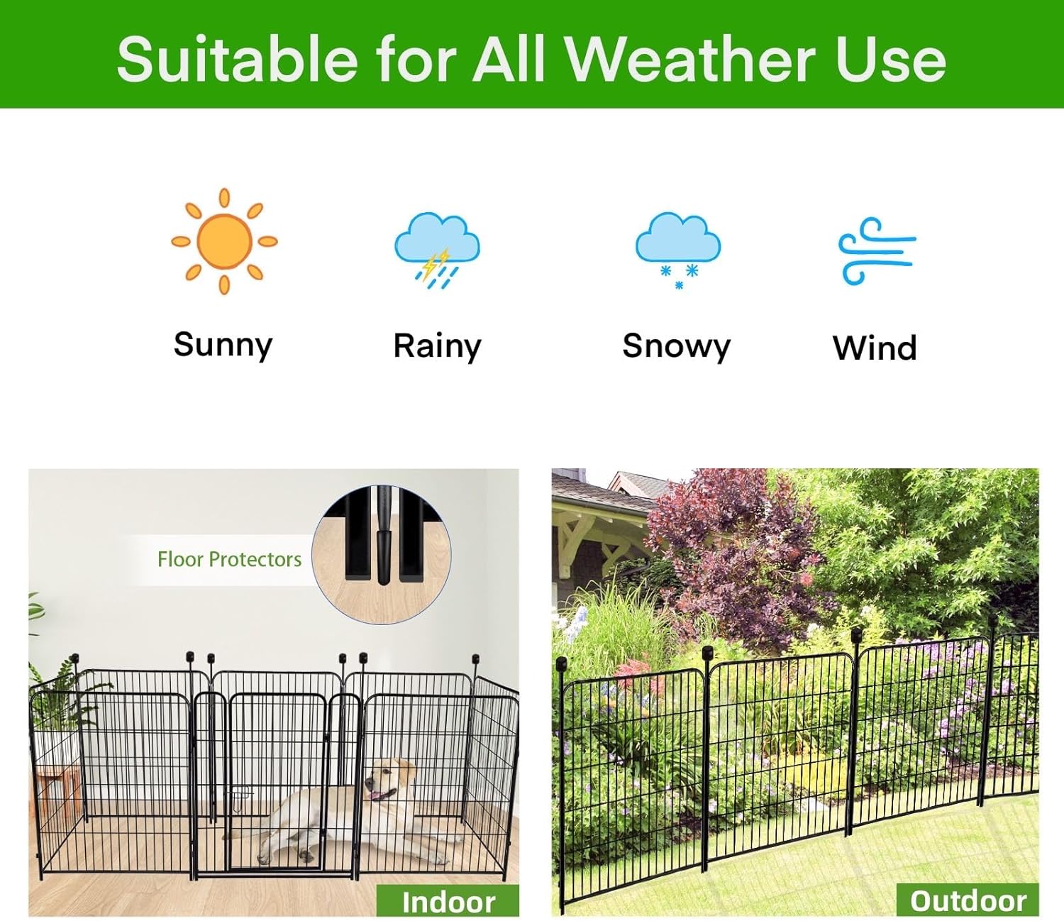 • Suitable for Many Needs: When Used Outdoors, This Fence Can be Used as A Garden Fences and Borders for Dogs, Beautiful and Safe. It Can also be Used as An Animal Barrier Fence to Prevent Your Pets from Escaping Your Yard. This Fence Can also be Used as An Indoor Dog Fence, and We've Equipped Each Pole with A Rubber Cover to Prevent It from Scratching Your Floor
