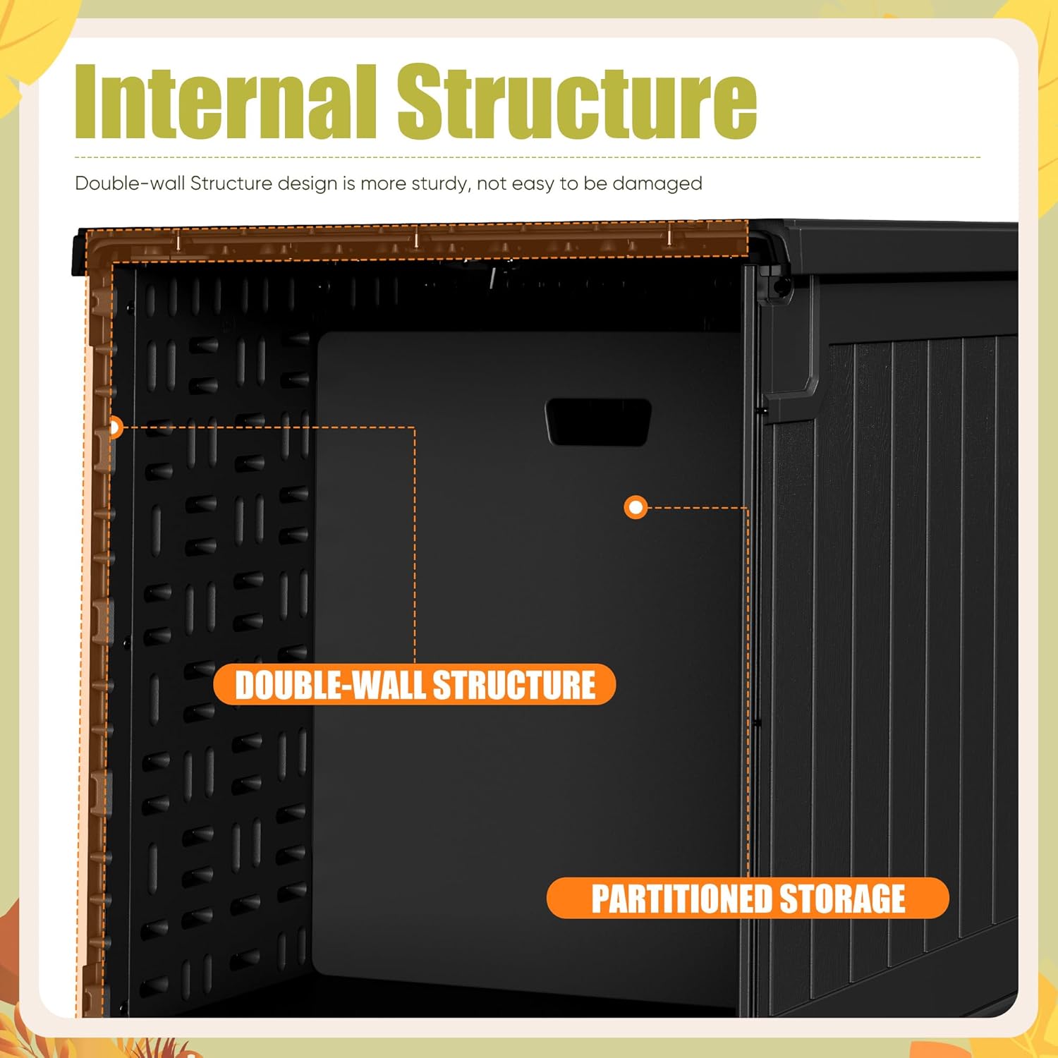 • Partitioned Storage: The Deck Storage Box has a 240-gallon capacity for storing anything you need, and with the partitioned storage design you can choose left or right side for partitioned storage as needed, making it easier to access your items