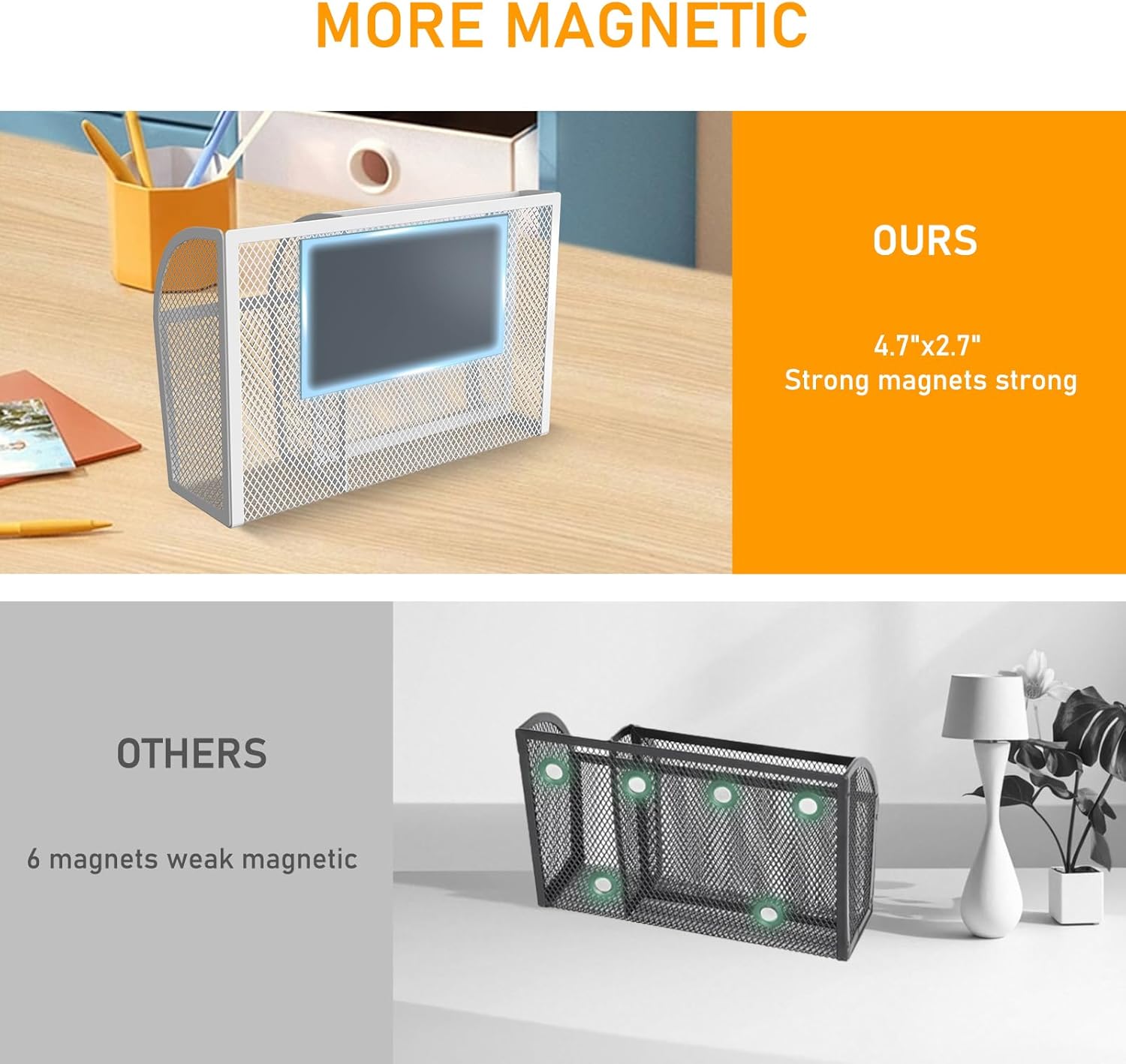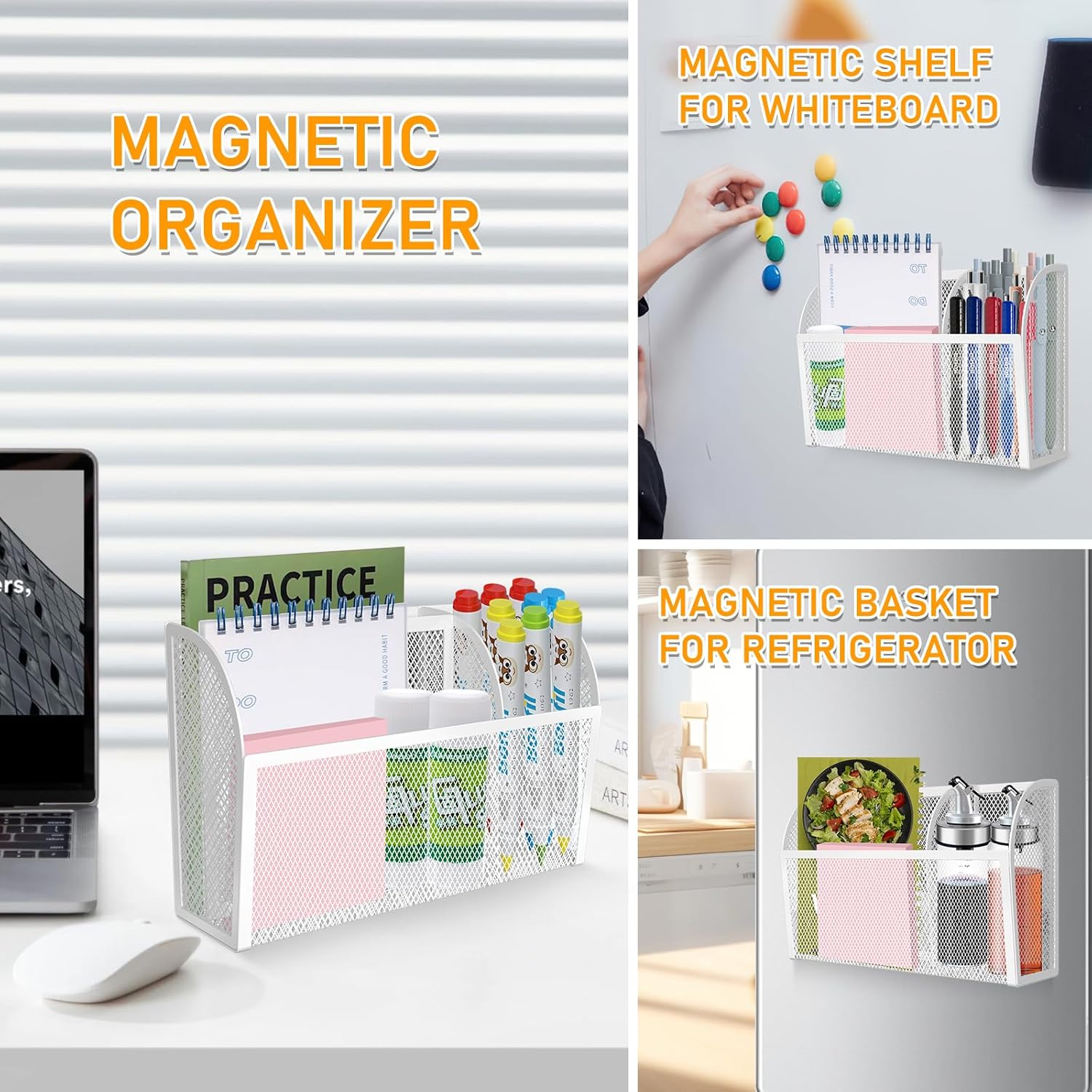 • Durable & Space-Saving: This magnetic marker storage basket offers ample storage for school, office, and kitchen supplies. Perfect for organizing pens, markers, clips, and more on refrigerators, lockers, whiteboards, and desks without taking up extra space.