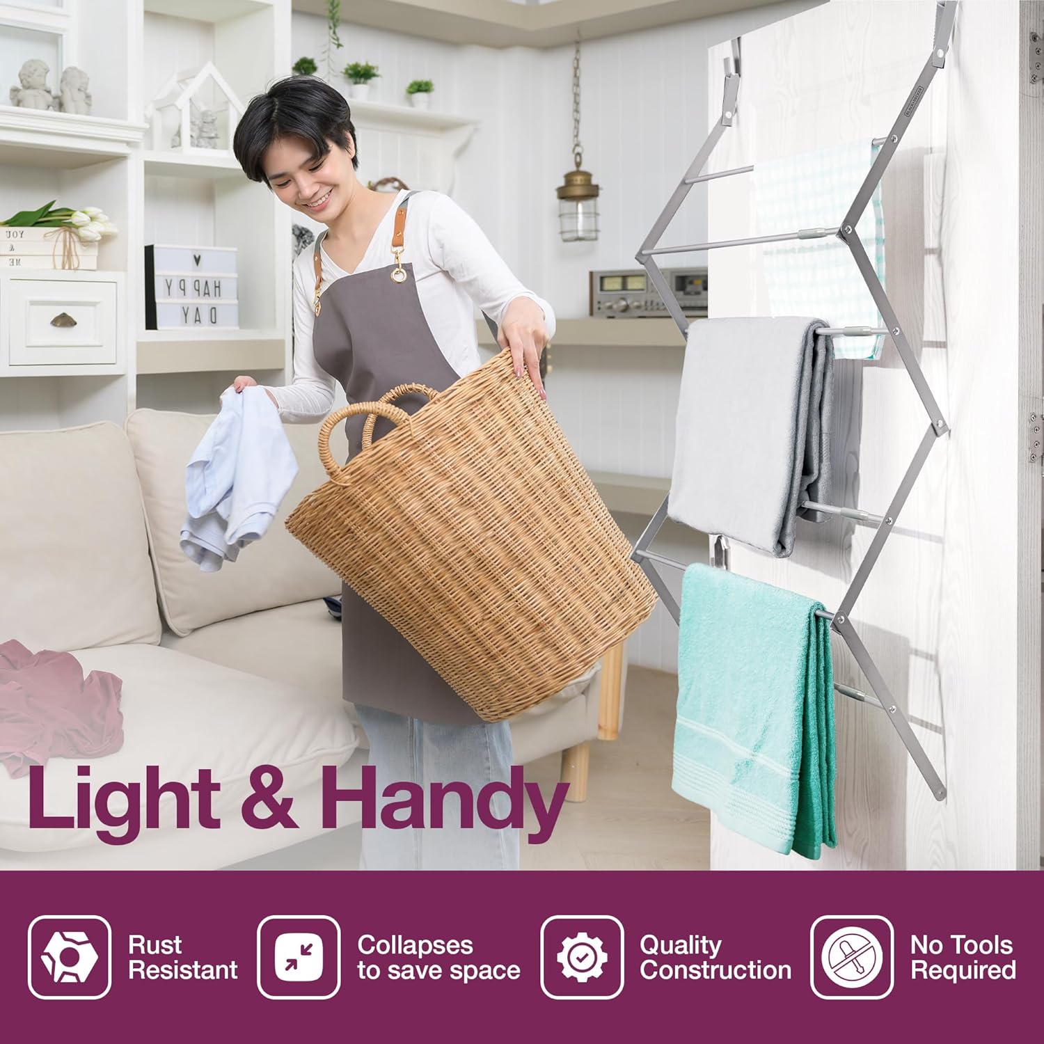 • Expandable & Space-Saving Design: Features a compact, over-the-door design that expands up to 24 inches and folds down to just 3.5 inches for easy storage.