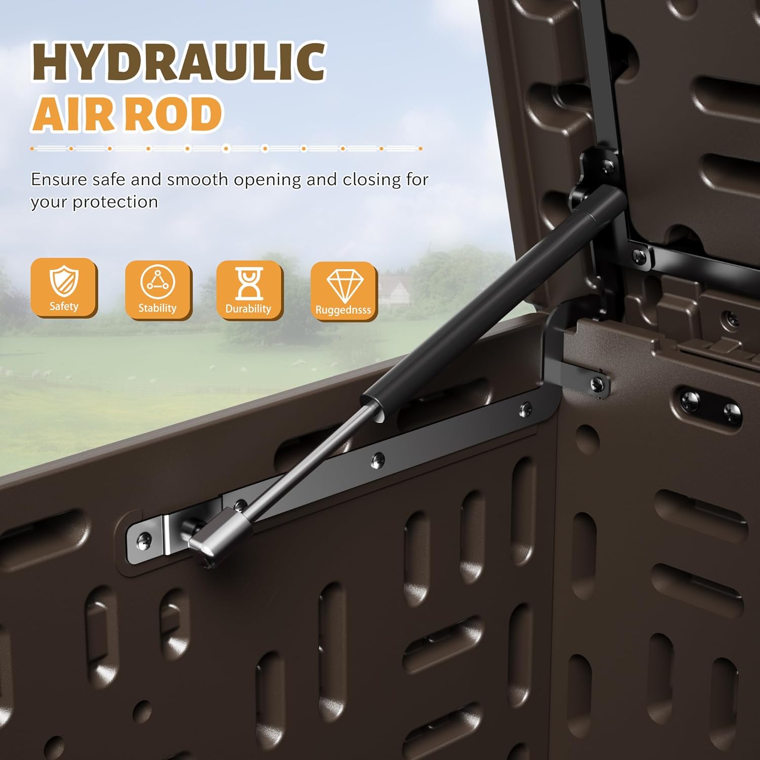 • [Safety Design]We choose hydraulic rods to connect the cover and the box, which buffers at the time of opening and closing, greatly ensuring the safety. In addition, the design of locker is a good helper for your safety of property