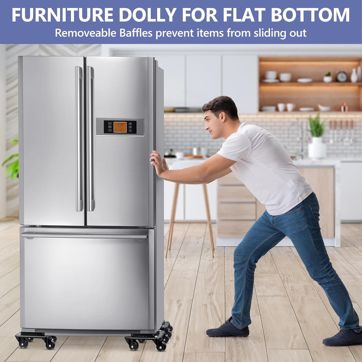 • Removable Baffles—Once installed, they secure furniture with legs during transport to prevent slipping. Remove them to effortlessly move flat-base furniture. This unique design specifically addresses the challenges of moving