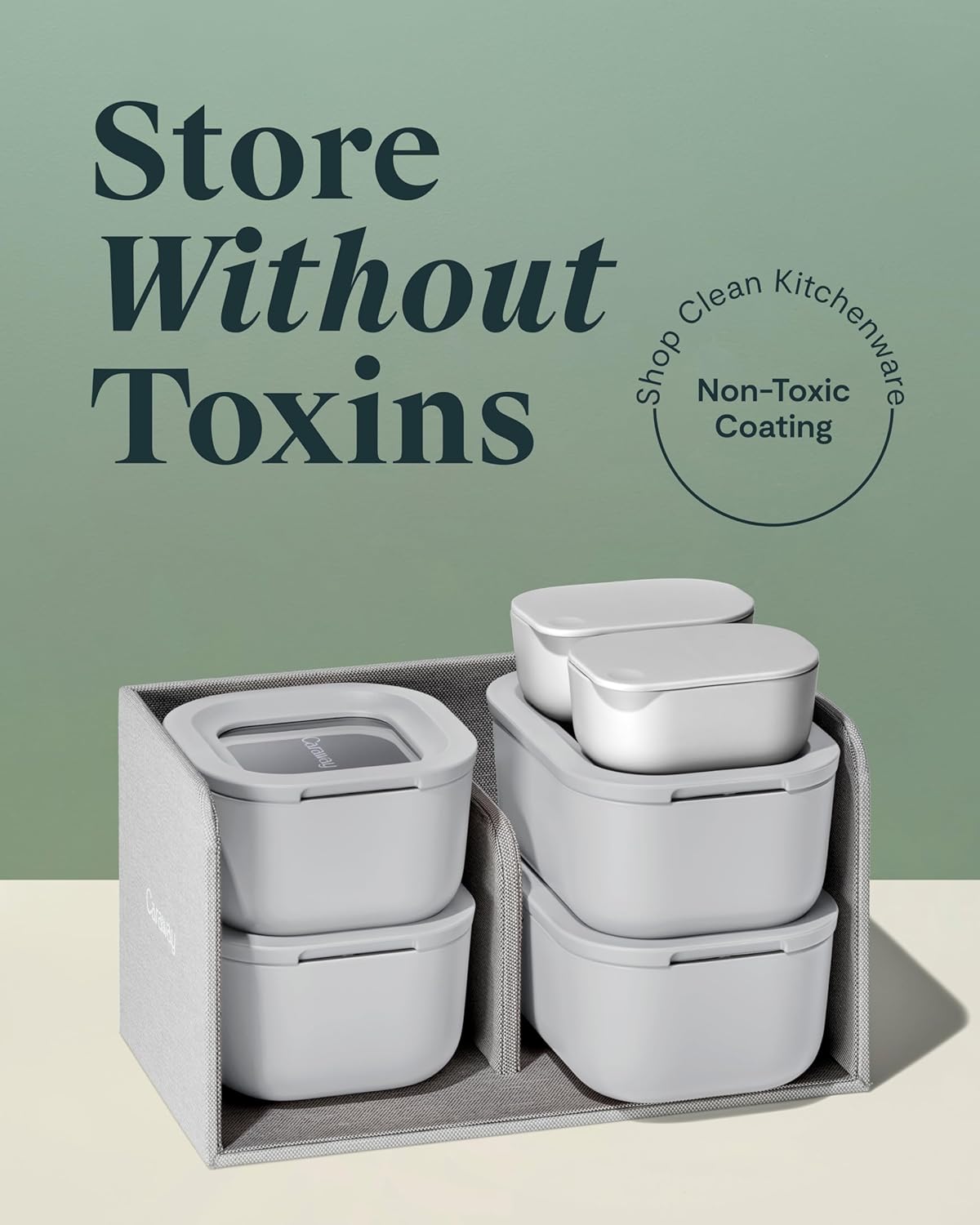 • NON-TOXIC & ECO-FRIENDLY MATERIALS: With a ceramic-coated surface, these containers are free from BPA, PFAS, and other harmful chemicals, ensuring safe and sustainable food storage.