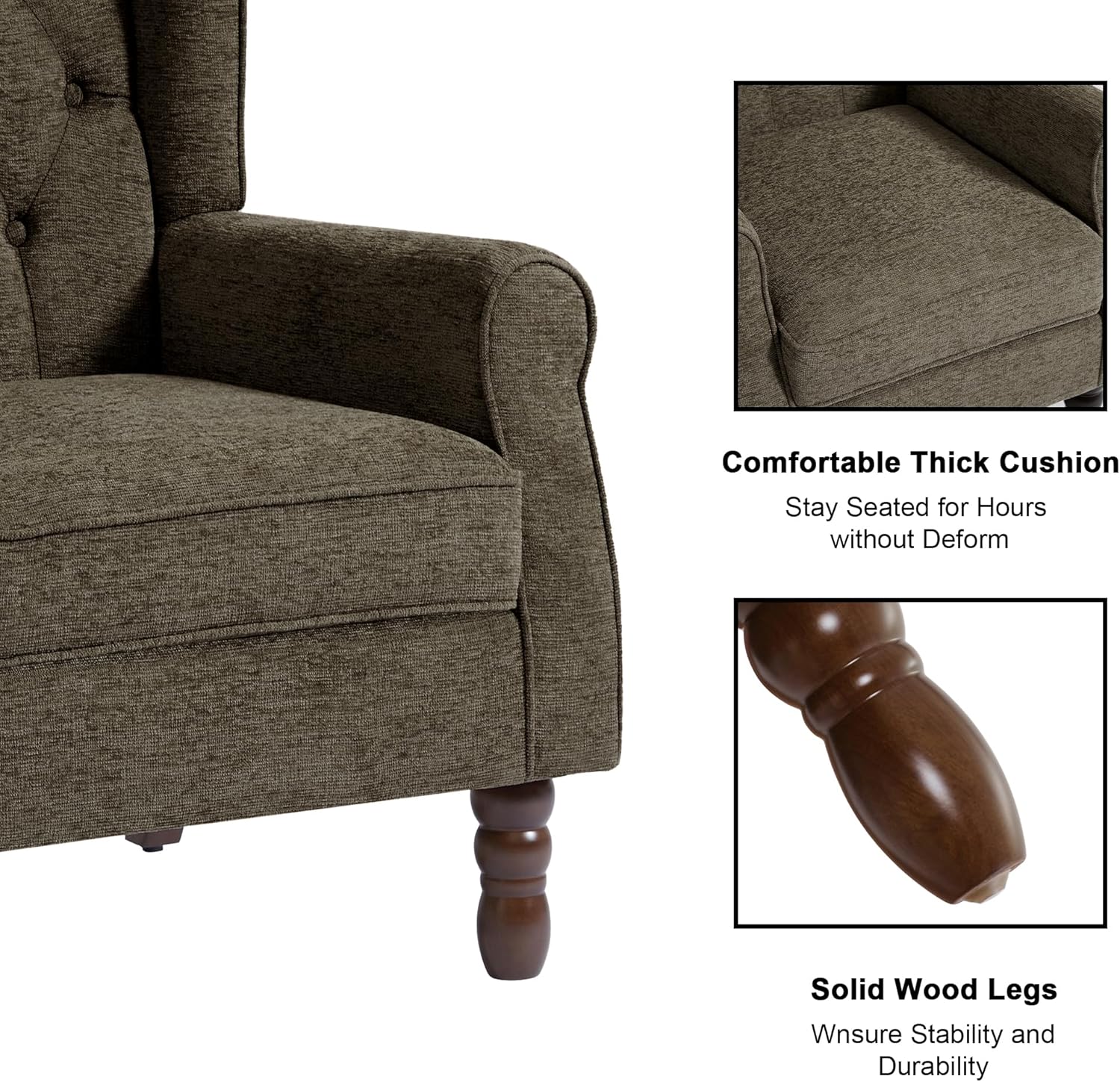 • High Back Accent Chair: The wingback of living room chairs is higher, which can better relieve the pressure on the back and waist, and bring a comfortable sitting experience