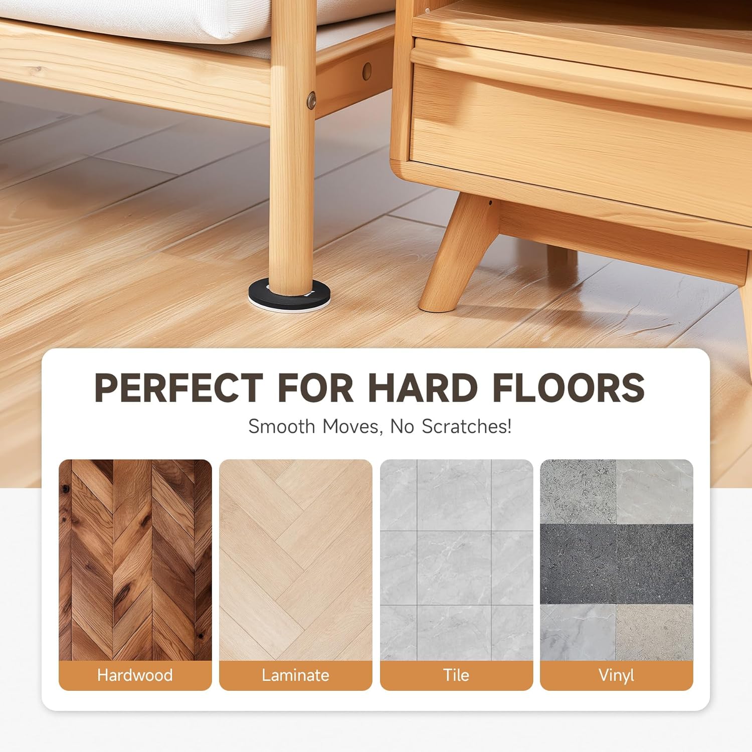 • No Scratches, No Damage: Designed for hard floors like hardwood, tile, vinyl, and laminate, these felt furniture pads protect your floors from scratches, dents, and scuffs, keeping your floors in perfect condition