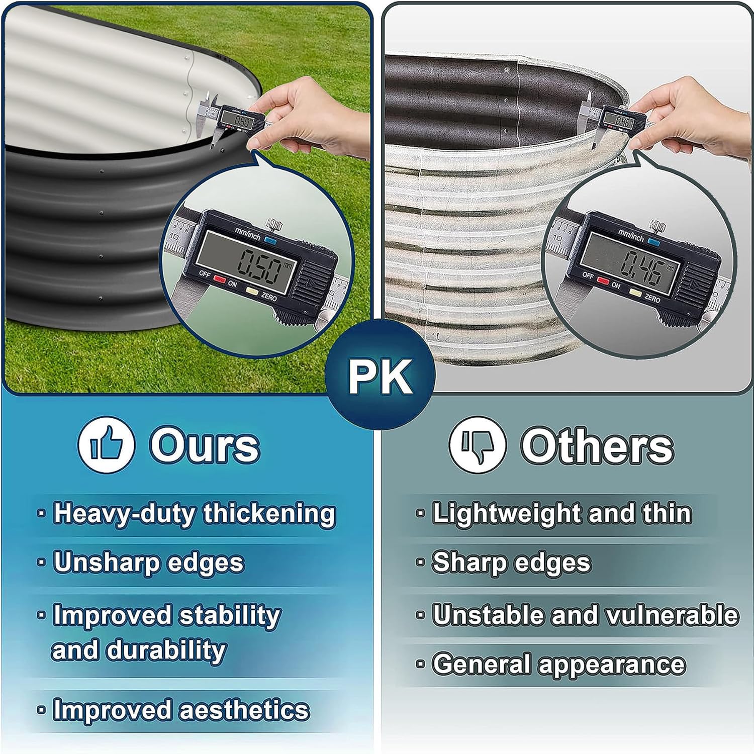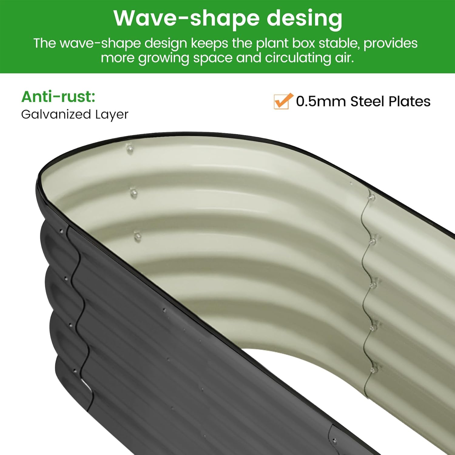 • 🌳 Unmatched Stability: Crafted with 0.5mm thick overlapping galvanized panels, reaching up to 1.8mm at the seams, our raised garden bed provides excellent strength and stability. The integrated screw fastening edge and unique oval form ensure it remains solid and secure, even when fully planted.