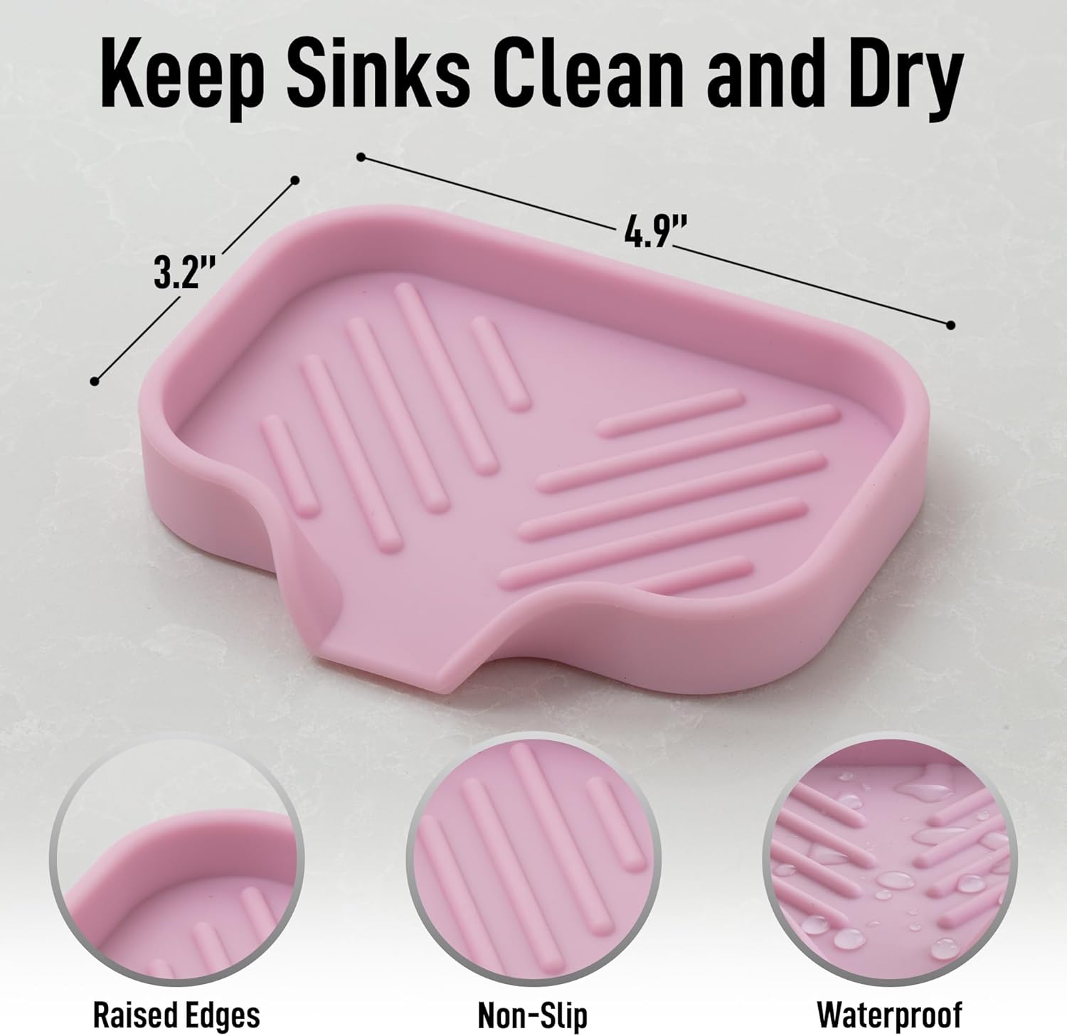 • MESS-FREE COUNTERTOPS: Keep your sink area tidy and free from soap residue with our small silicone sponge holder. Measuring 4.9 x 3.3 inches, this compact tray is ideal for holding a sponge, scrubber, soap bar, or small brush. Its space-saving design is perfect for use in kitchens, bathrooms, laundry rooms, or vanities—great for organizing small essentials like jewelry, makeup, or accessories.