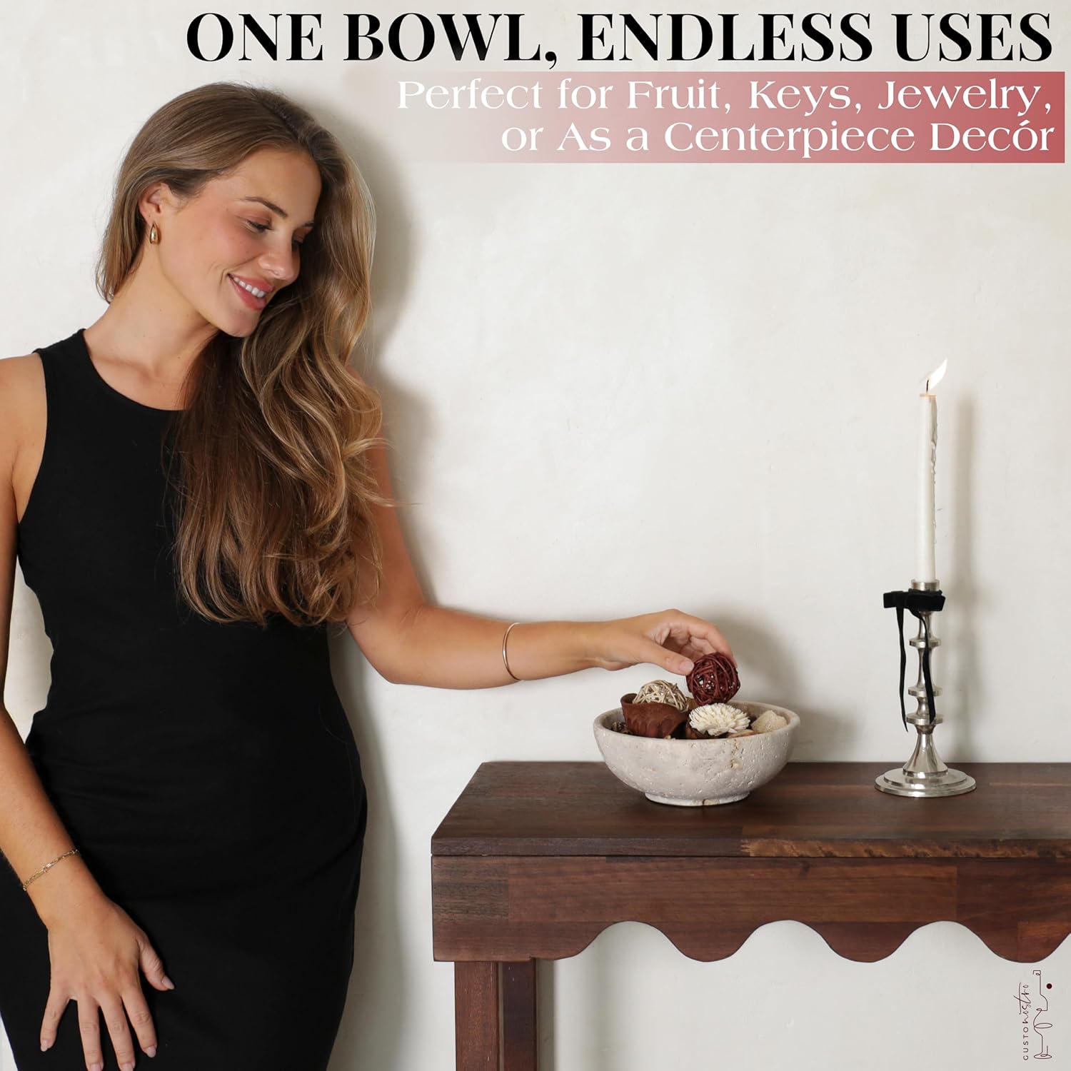 • Premium Stone Tabletop Accent: Carved from natural limestone and weighing nearly 4 lbs, this beige decorative bowl feels as solid as it looks. The felted base keeps it secure and scratch-free, so you can place it anywhere with confidence