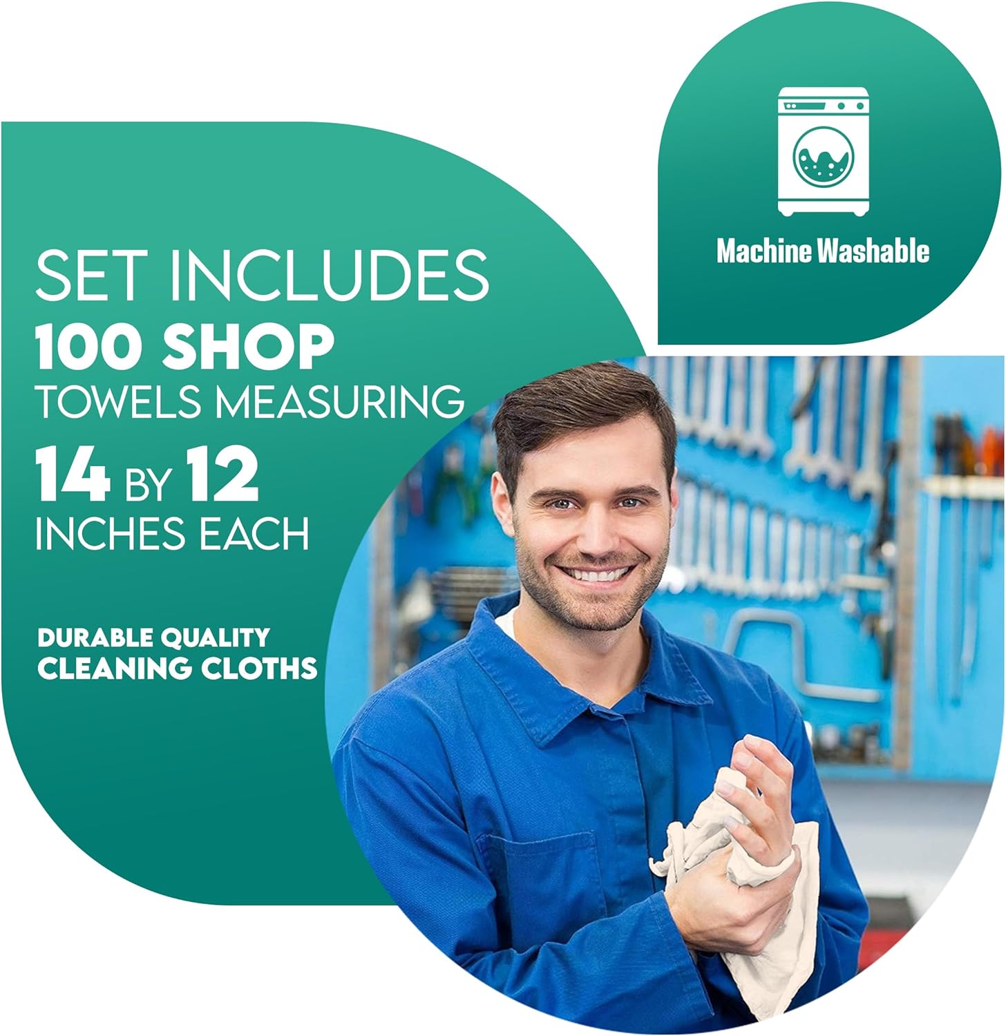 • Effortless Cleaning Power — Zuperia Shop towels include a Pack of 300 cotton shop towels measuring 14" x 12" Inches. They can quickly wipe away dirt, stains, and spills, effortlessly absorbing liquids, oils, and grease for efficient cleaning.