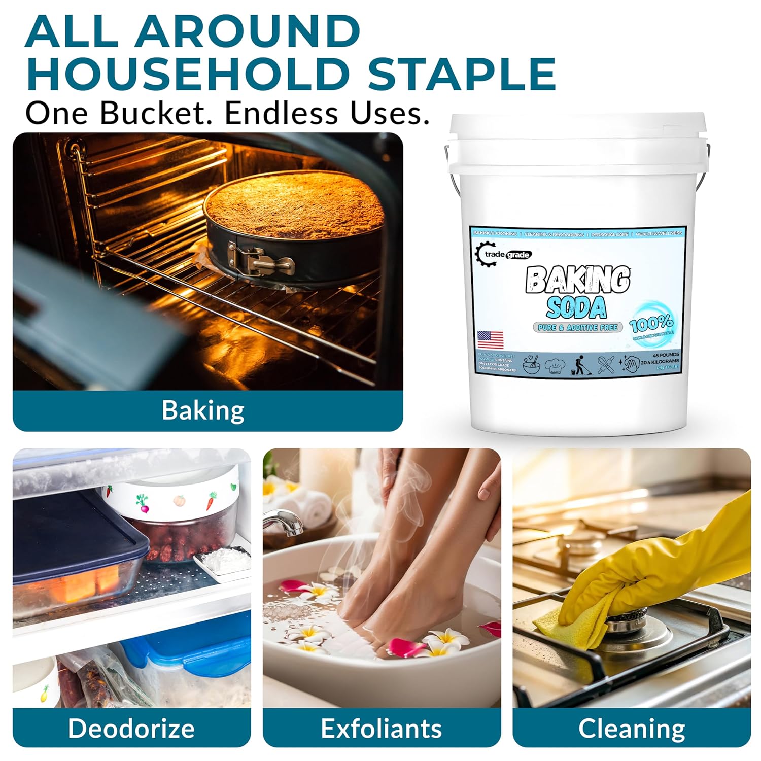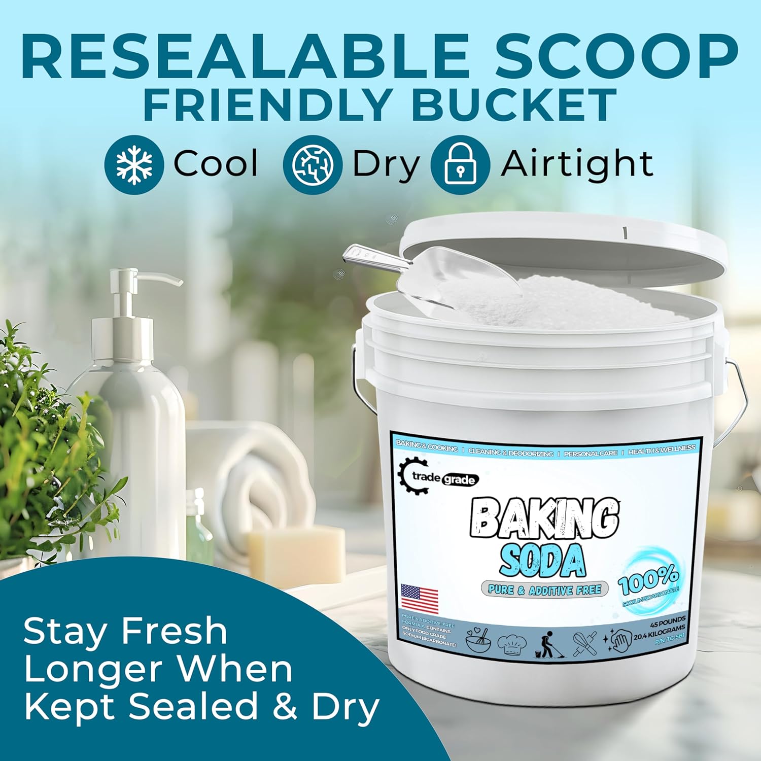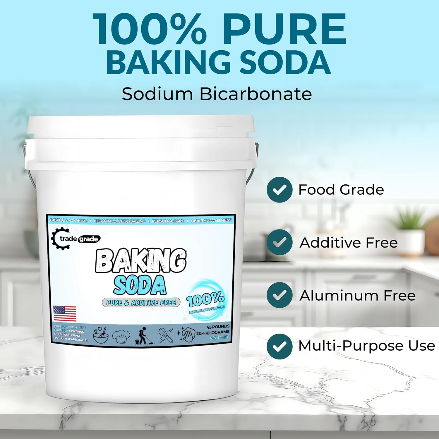 TradeGrade Pure Baking Soda Powder – 45 lb Bucket, Sodium Bicarbonate Powder | Premium Food-Grade for Baking, Bread, Cookies & More | Baking Soda for Cleaning, Natural Cleaner & Deodorizer