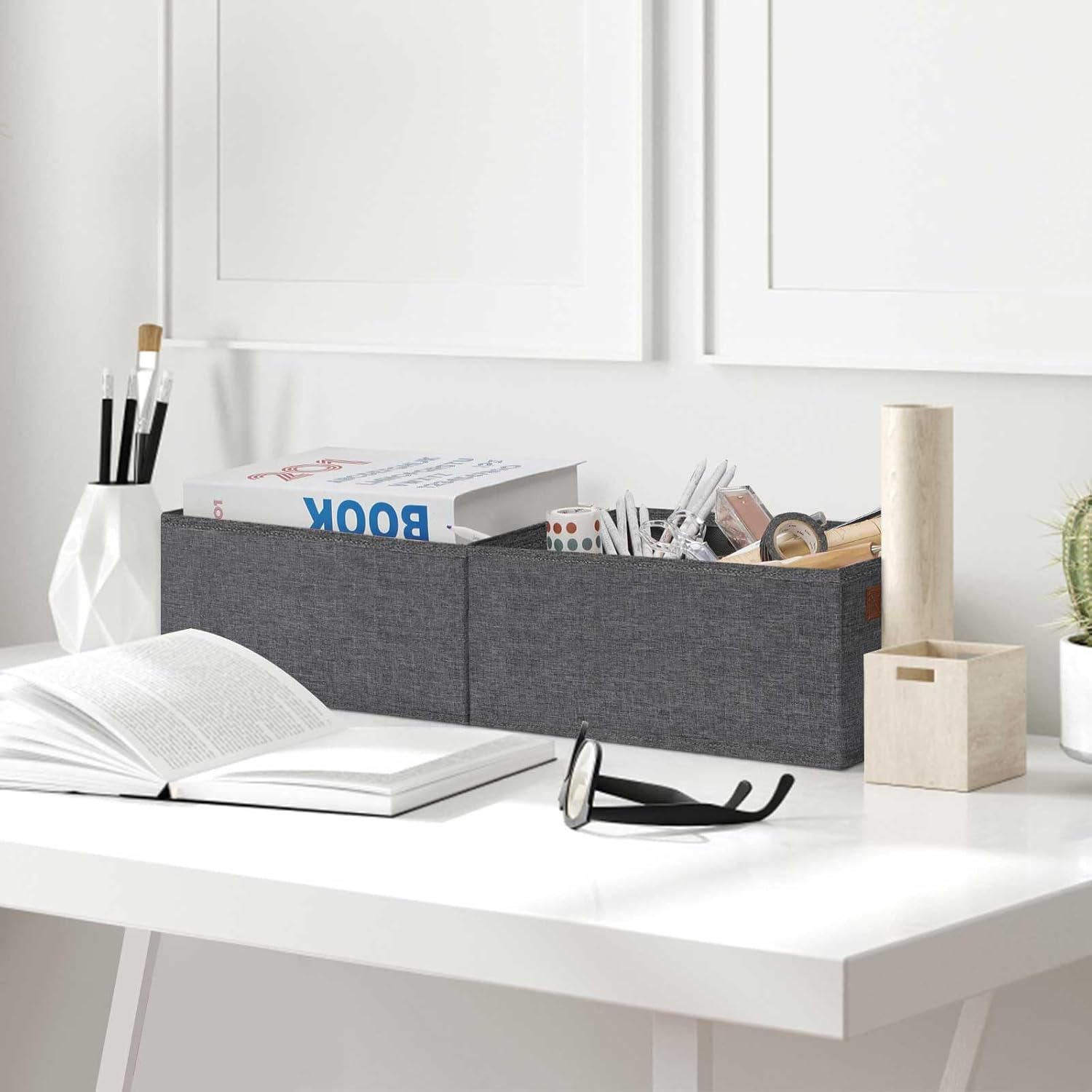 • 👍【STURDY STRUCTURE】GhvyenntteS storage bins will exceed your expectations for quality, durability. Unlike others, our storage baskets have stiff cardboards inserted in the bottom and four sides for support allowing fabric storage baskets and keep them standing and structural integrity. Provide rigidity for daily use and ensure a greater product lifespan