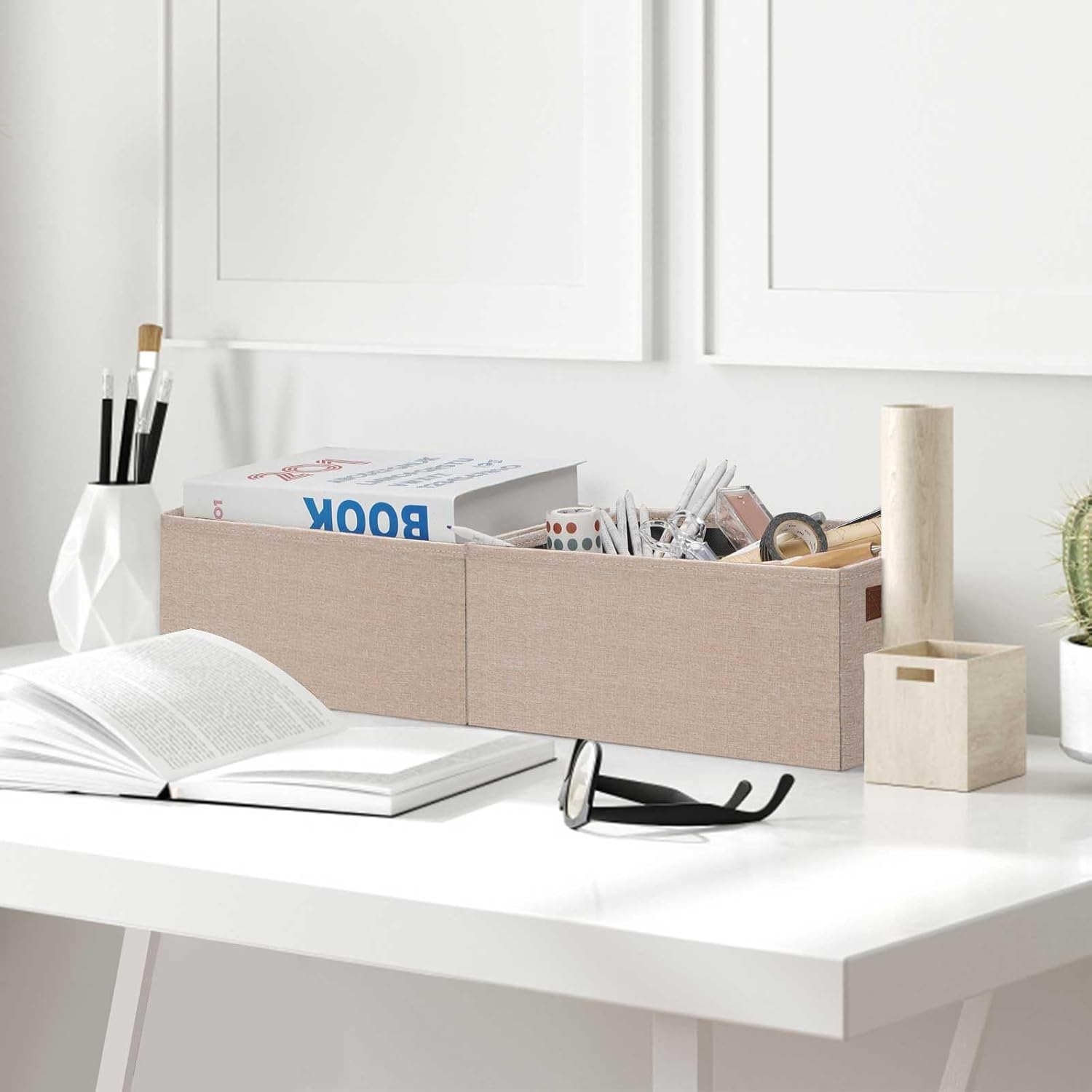 • 👍【MULTI-PURPOSE】Sturdy closet storage bins provides a solution to meet many storage needs; Used to organize and store clothes, shoes, towels, toiletries, books, DVD, CD, office supplies, pet supplies, baskets for gifts empty. The ideal storage bins for shelves can be easily placed in the shelf, closet, bedroom, living room, dormitory, study, bathroom, laundry room, office and much more