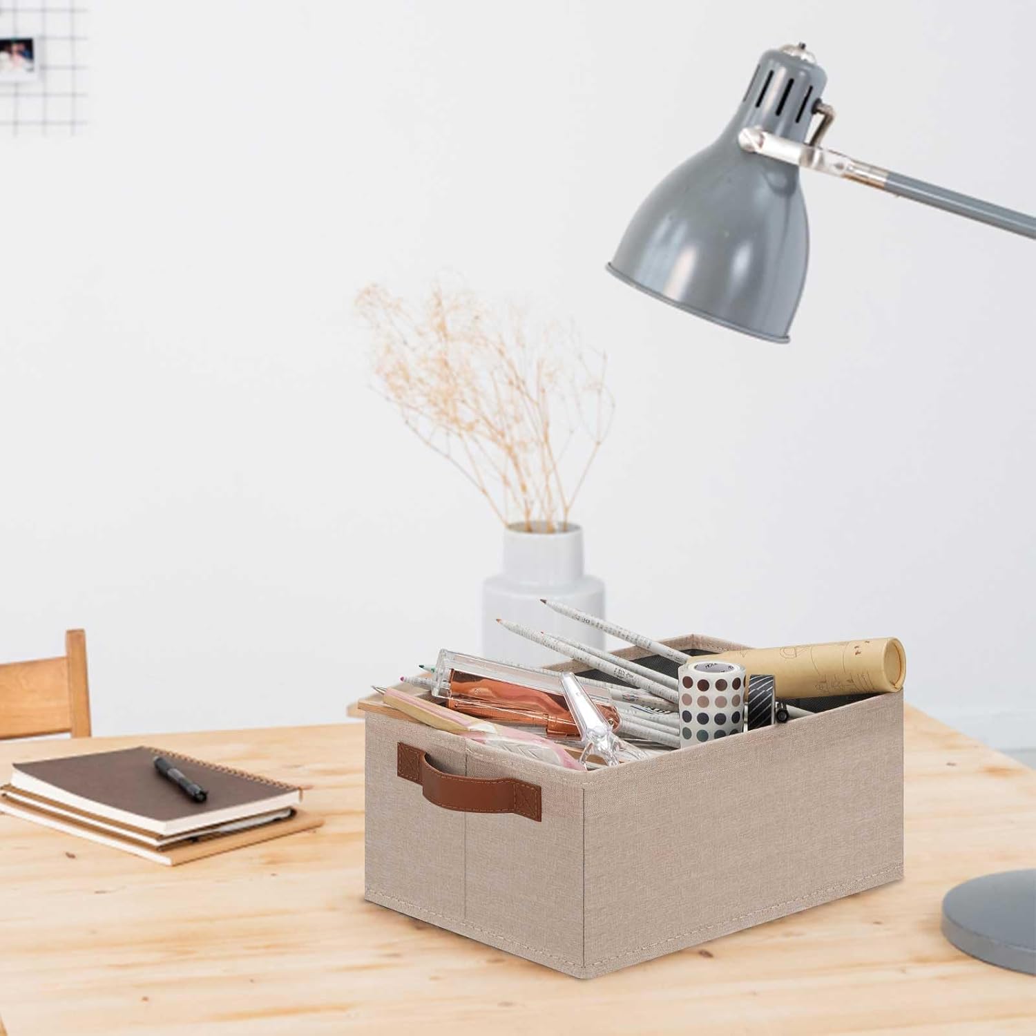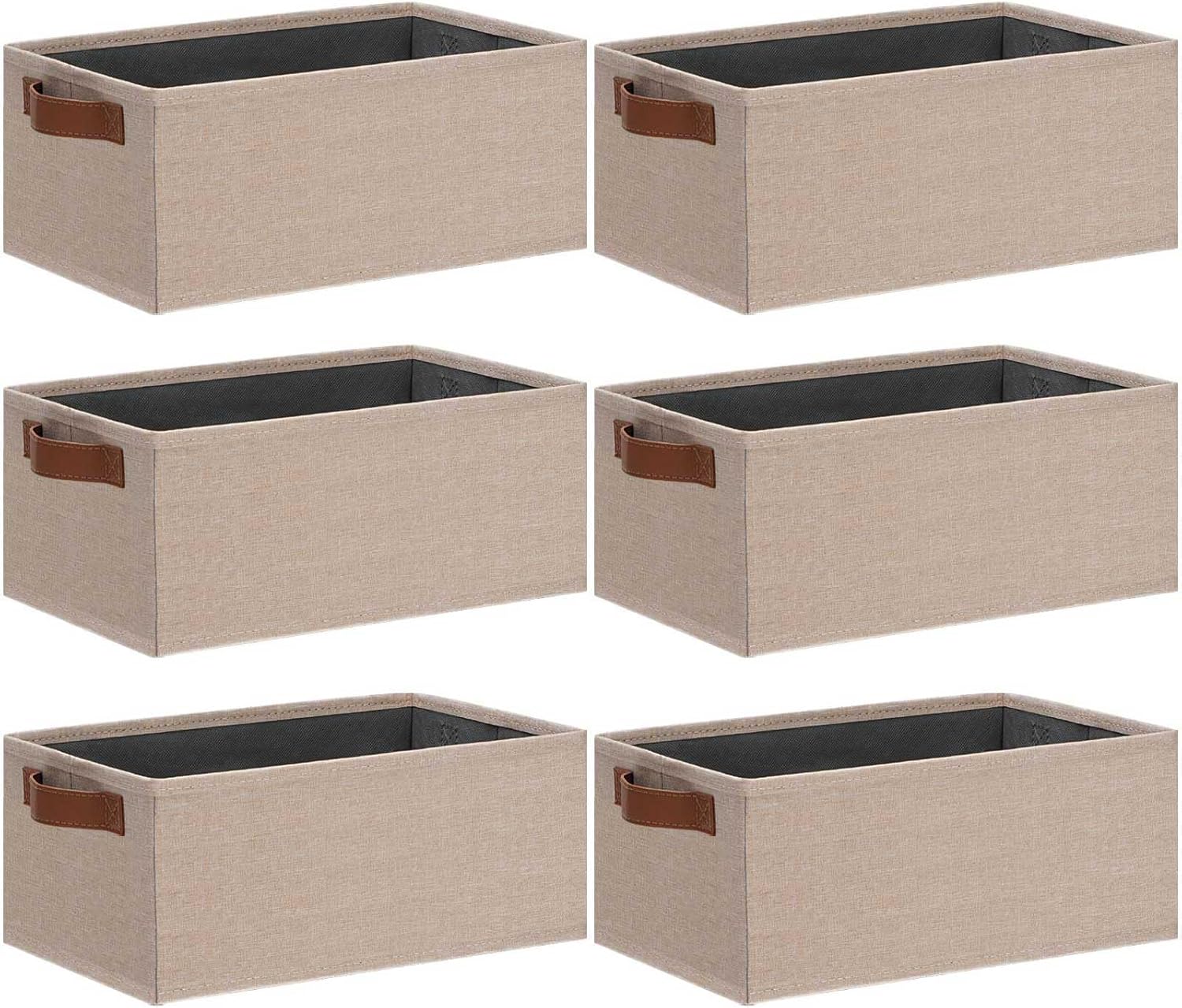 • 👍【SMALL STORAGE BINS】Set of 6 small storage bins, dimensions (each): 11.8(L) x 7.87(W) x 5.11(H) inch, which can store a variety of items to organize your home or office. With their perfect size and stylish appearance, these fabric storage baskets effortlessly blend with many furniture styles and color palettes, while keeping your home organized