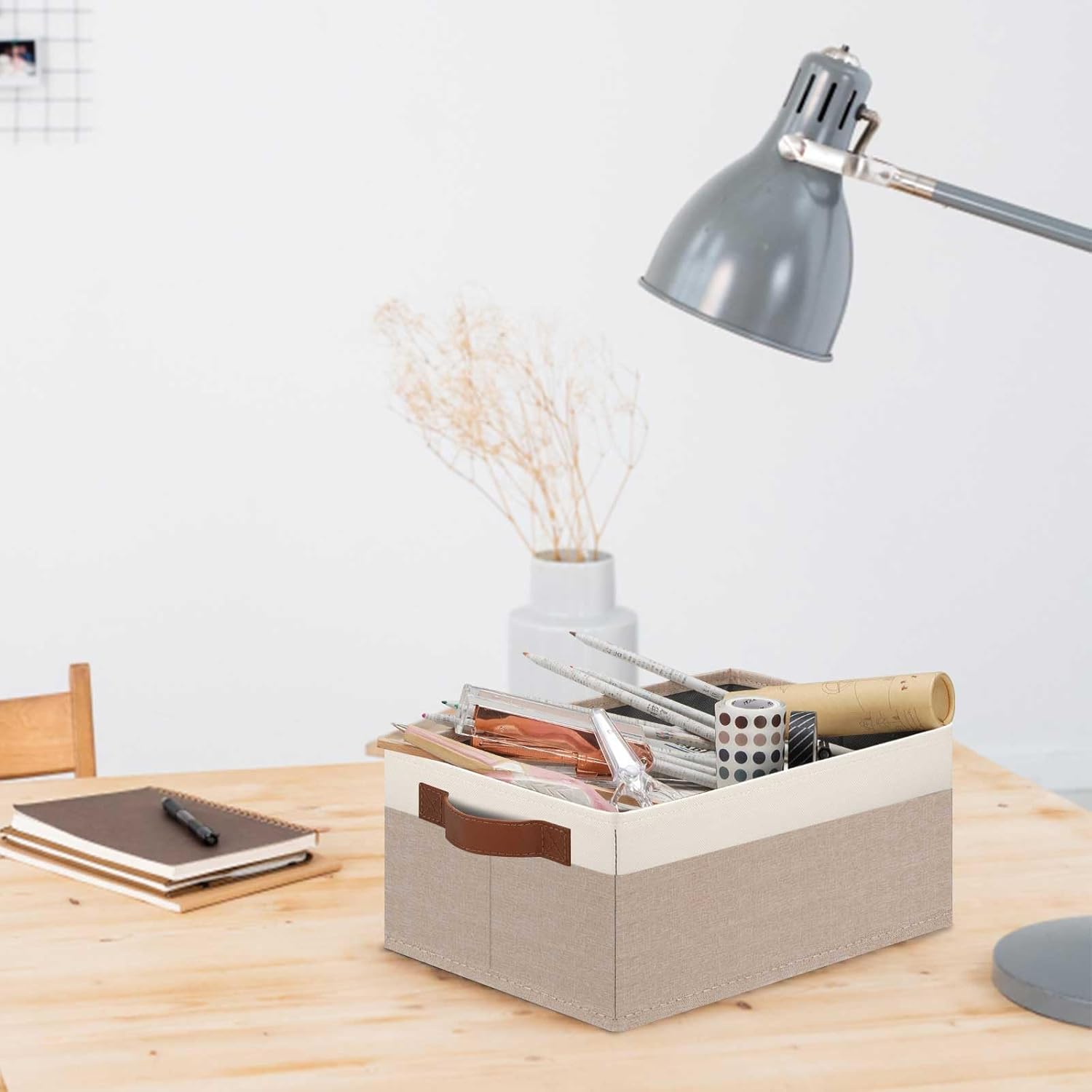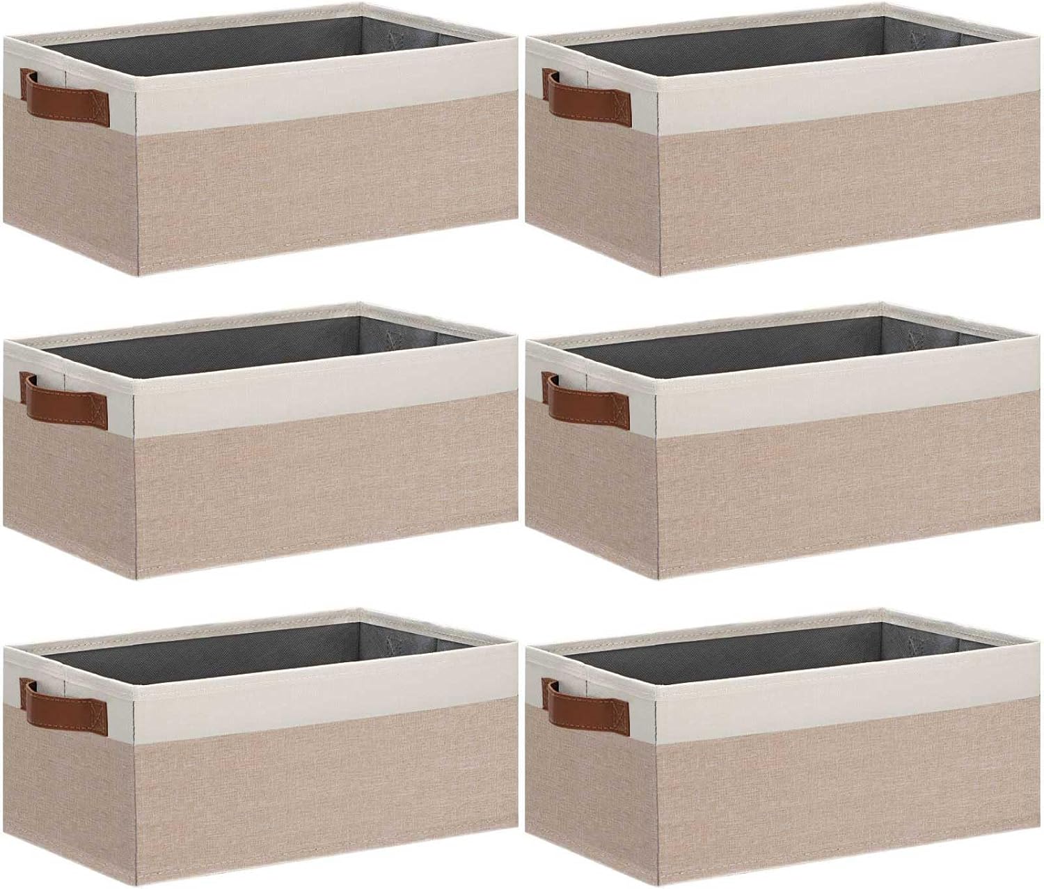 • 👍【SMALL STORAGE BINS】Set of 6 small storage bins, dimensions (each): 11.8(L) x 7.87(W) x 5.11(H) inch, which can store a variety of items to organize your home or office. With their perfect size and stylish appearance, these fabric storage baskets effortlessly blend with many furniture styles and color palettes, while keeping your home organized